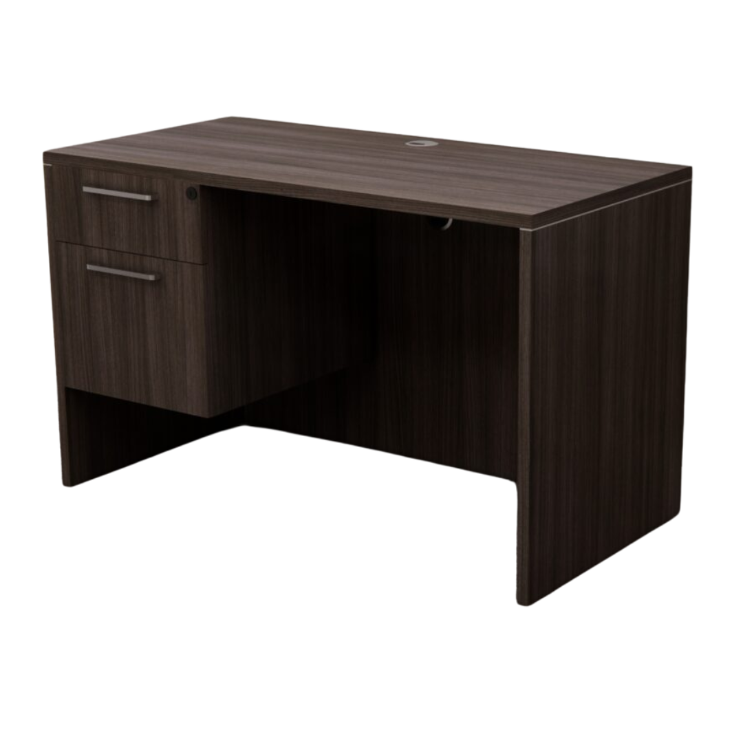 Upgrade your workspace with the Skyline Walnut Laminate Desk by Gateway Office Furniture. This modern setup includes a 60″ × 30″ desk shell plus a Box/File (B/F) hanging pedestal for convenient storage and a clean, professional look.
