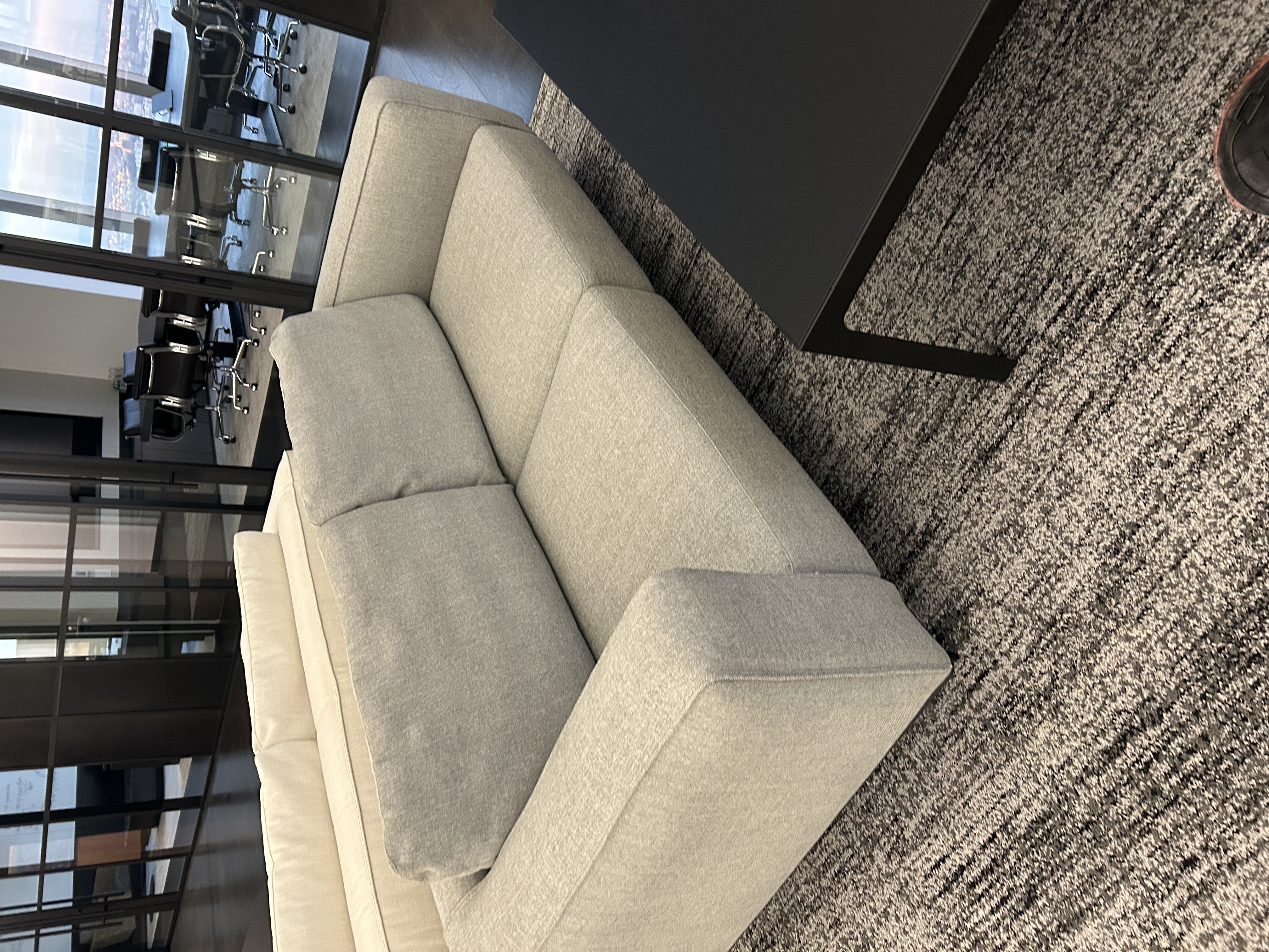 Enhance your lounge or reception area with this Estel fabric sofa, featuring a modern light grey finish. Combining minimalist design with a spacious profile, this sofa provides a professional and inviting seating solution for any contemporary workspace.