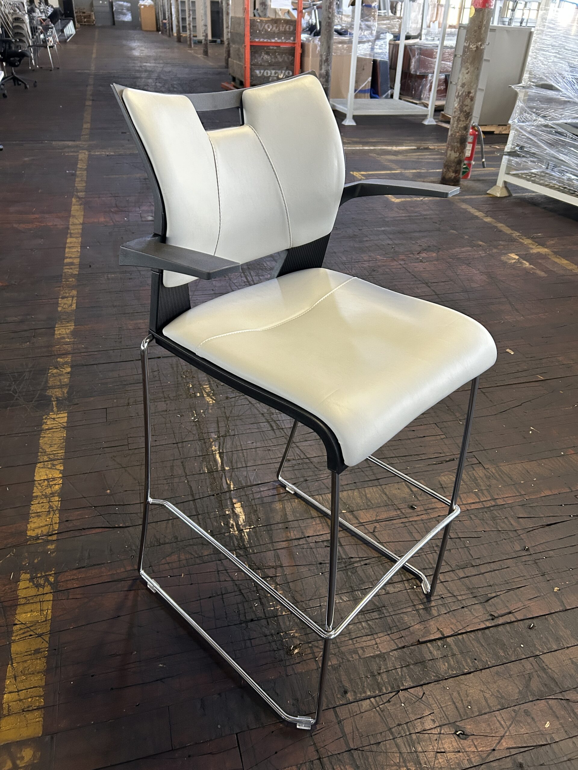 Elevate your space with this stylish bar-height stool, featuring a cream vinyl seat and striking black accent. Perfect for kitchen islands or high-top meeting tables, it combines easy-to-clean comfort with a sleek modern design.