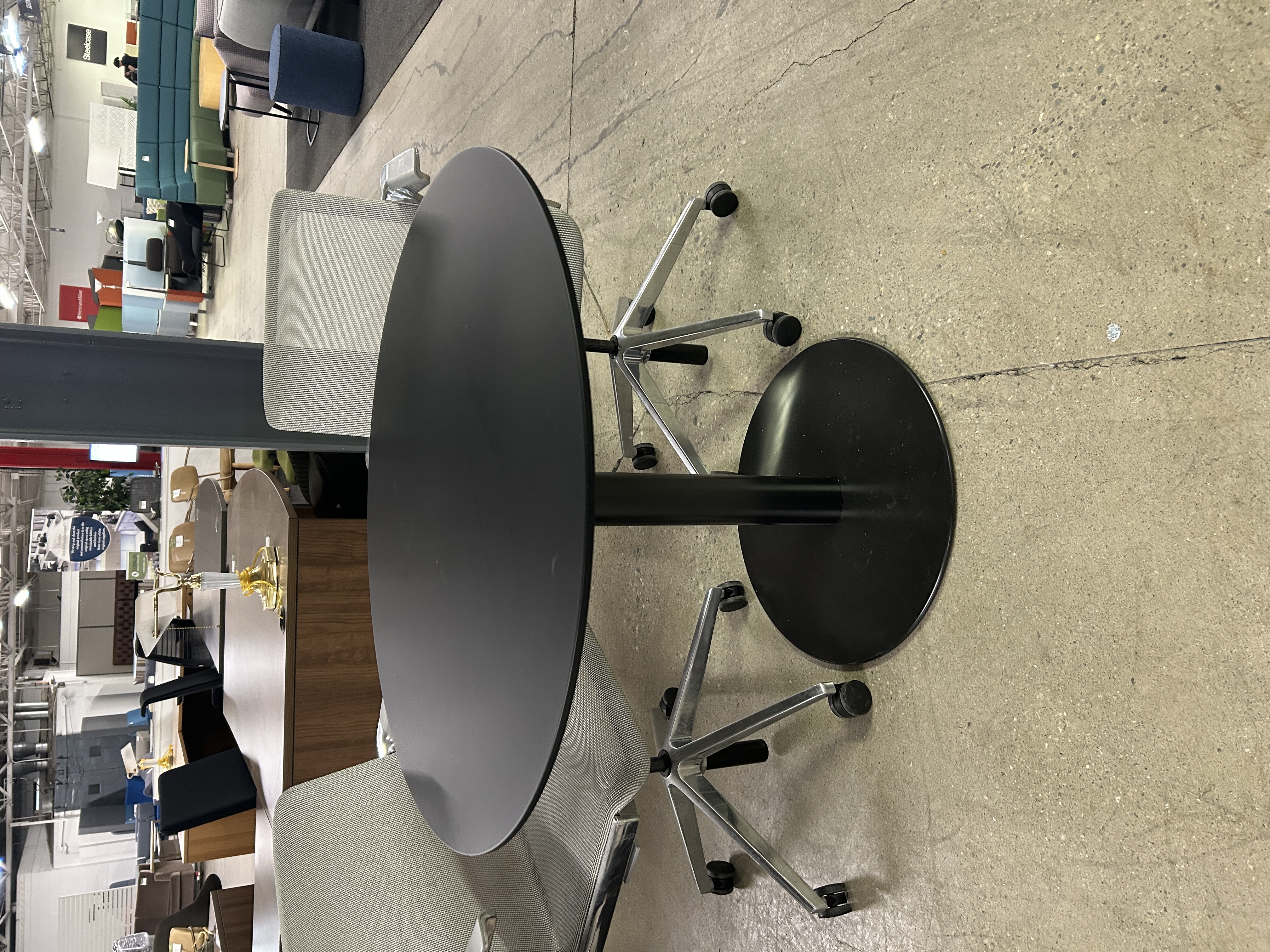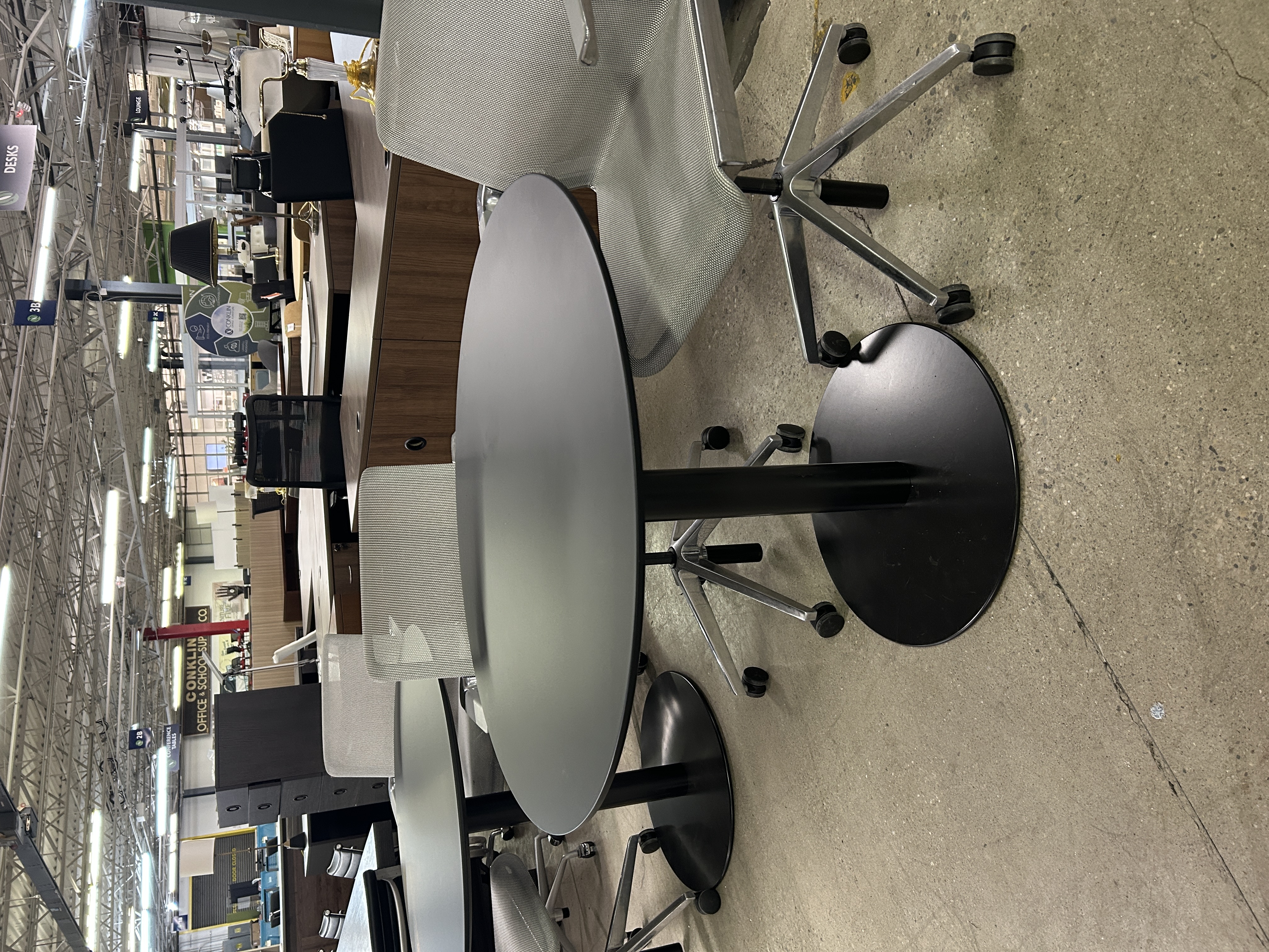 Upgrade your meeting space with the 39″ Black Round Table. Featuring a sleek black top and sturdy pedestal base, this table delivers modern style and lasting durability. Its round design encourages collaboration, making it ideal for small meetings, cafés, or breakout areas.