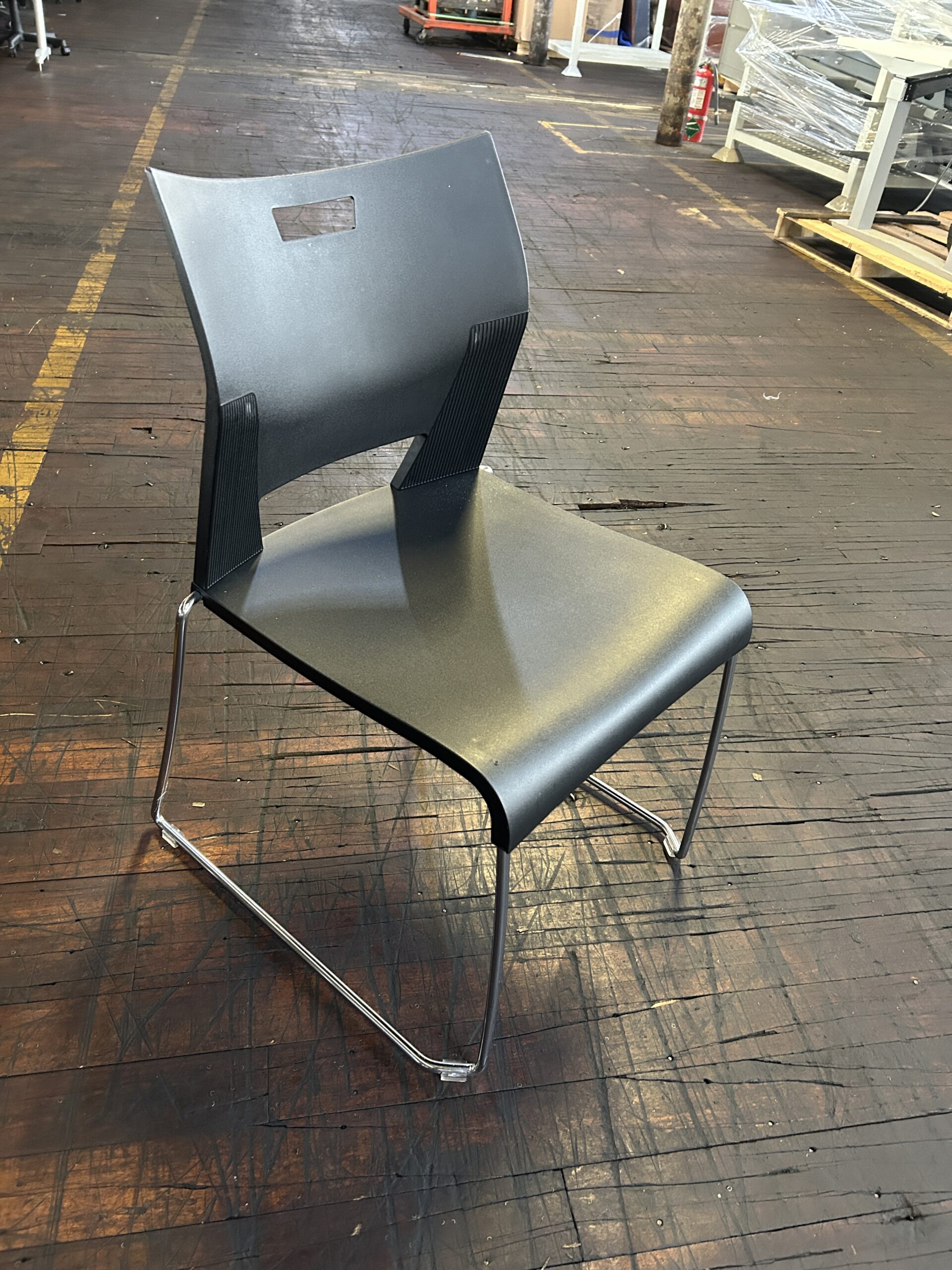 Outfit your multipurpose spaces with this durable black stack chair featuring a sled base. Designed for high-traffic commercial use, its sleek profile and stacking capability make it a functional and space-saving seating solution for training rooms, cafeterias, and offices.