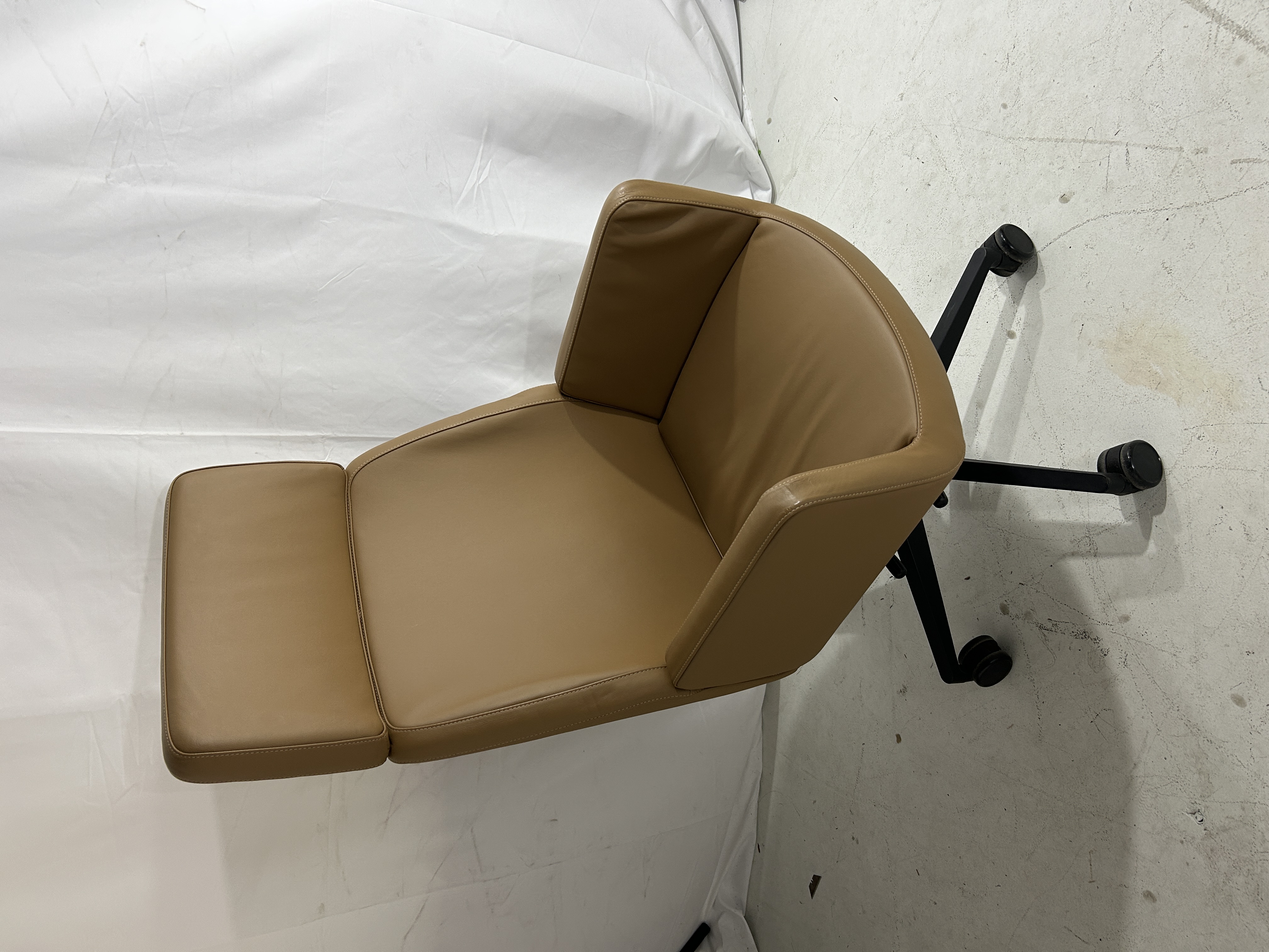 Invest in premium comfort and style with the Steelcase Coalesse Executive High Back Leather Chair. Upholstered in luxurious caramel brown leather, this high-end seating solution offers superior back support and features pneumatic height adjustment for a perfectly tailored ergonomic experience in any executive or home office setting.