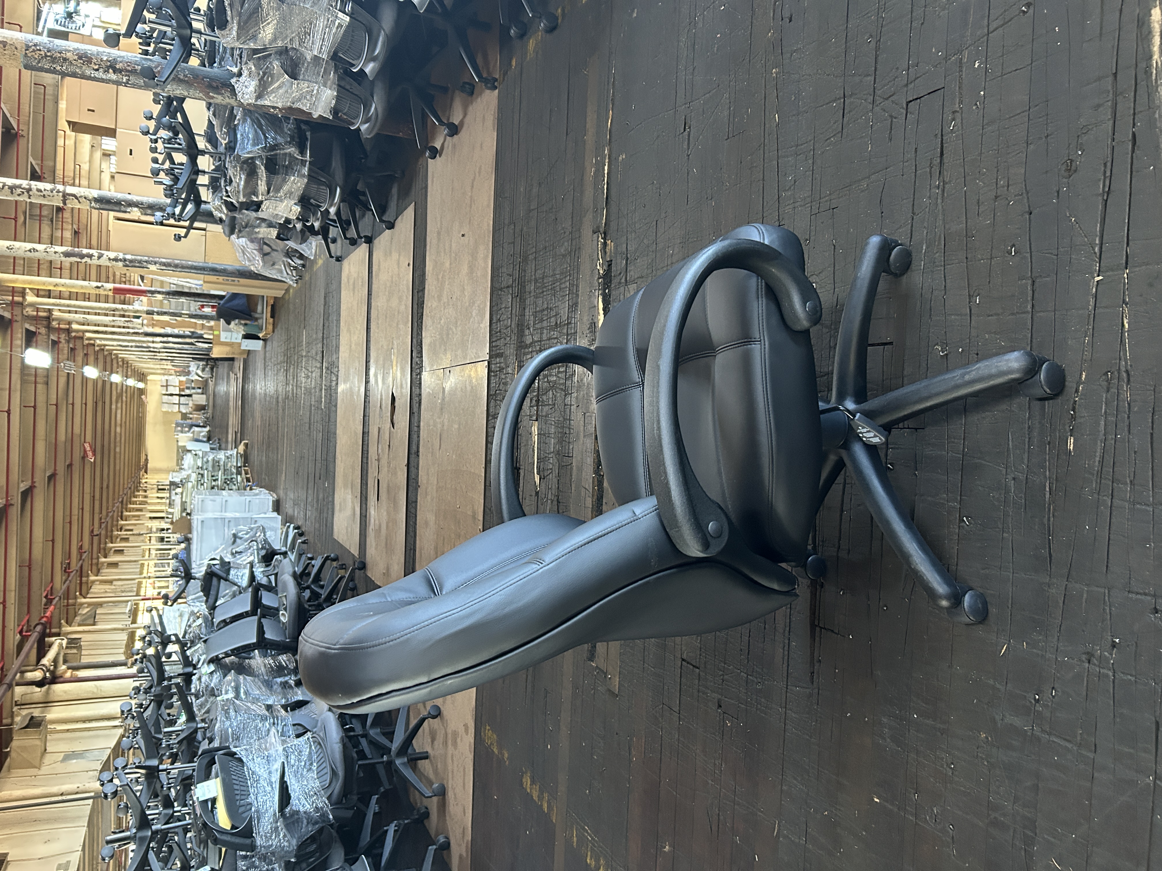 - Premium black vegan leather upholstery