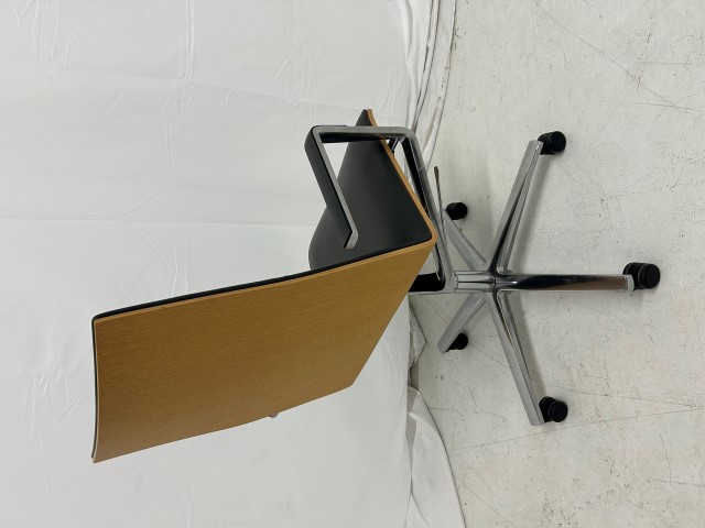 Elevate your space with the Davis Sola Chair, where minimalist design meets high-impact style. Featuring a Helvetia-Webb Davis Grey leather seat and oak veneer shell, it offers comfort and a distinctive look. Pneumatic height adjustment and fixed arms complete its functional elegance.