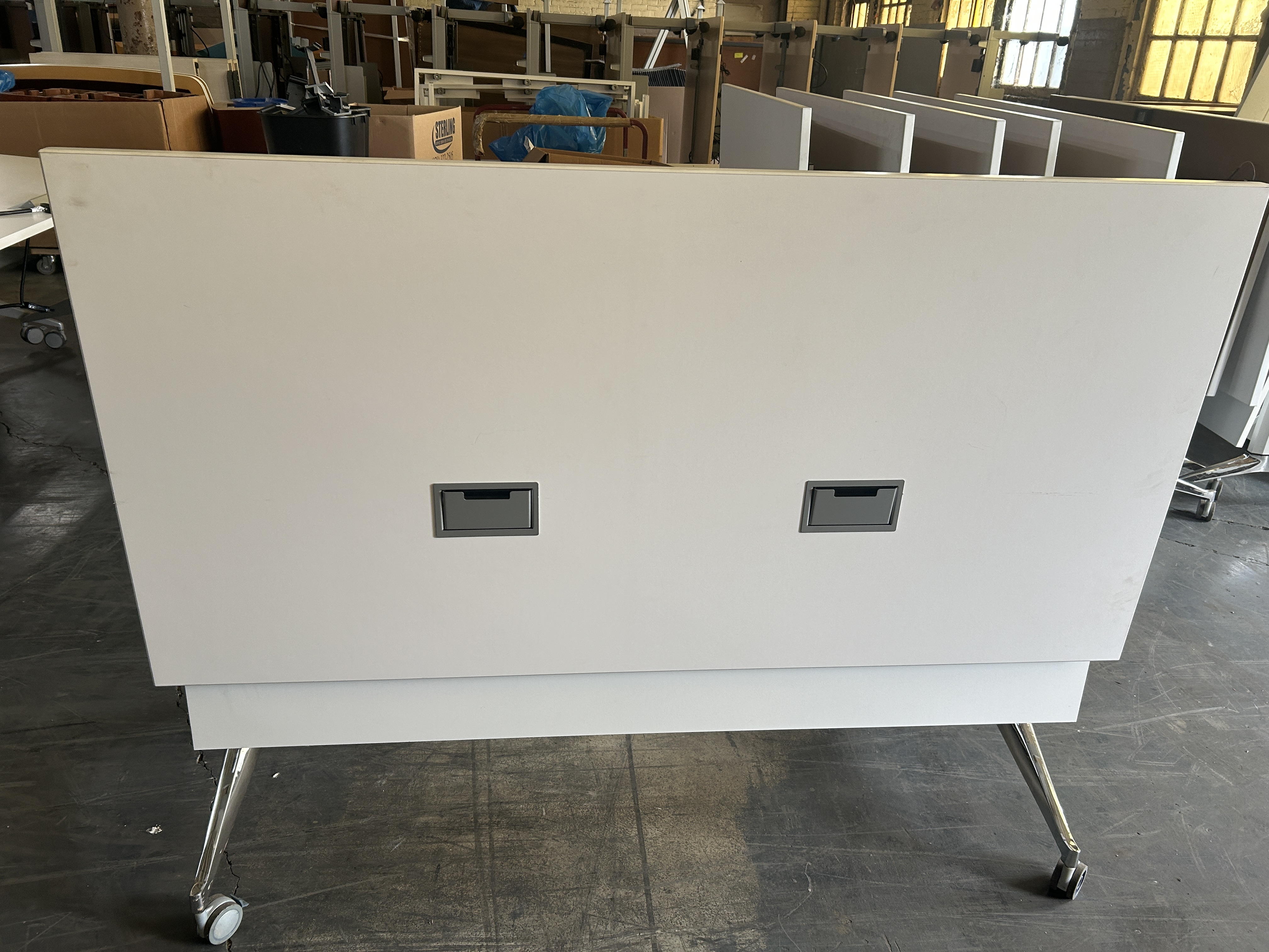 Design the perfect collaborative or educational space with the highly versatile Nesting Training Tables. Featuring a crisp white laminate flip-top, these tables offer superior flexibility, easy storage, and built-in power, making them the ultimate flexible office furniture solution for any modern training room.