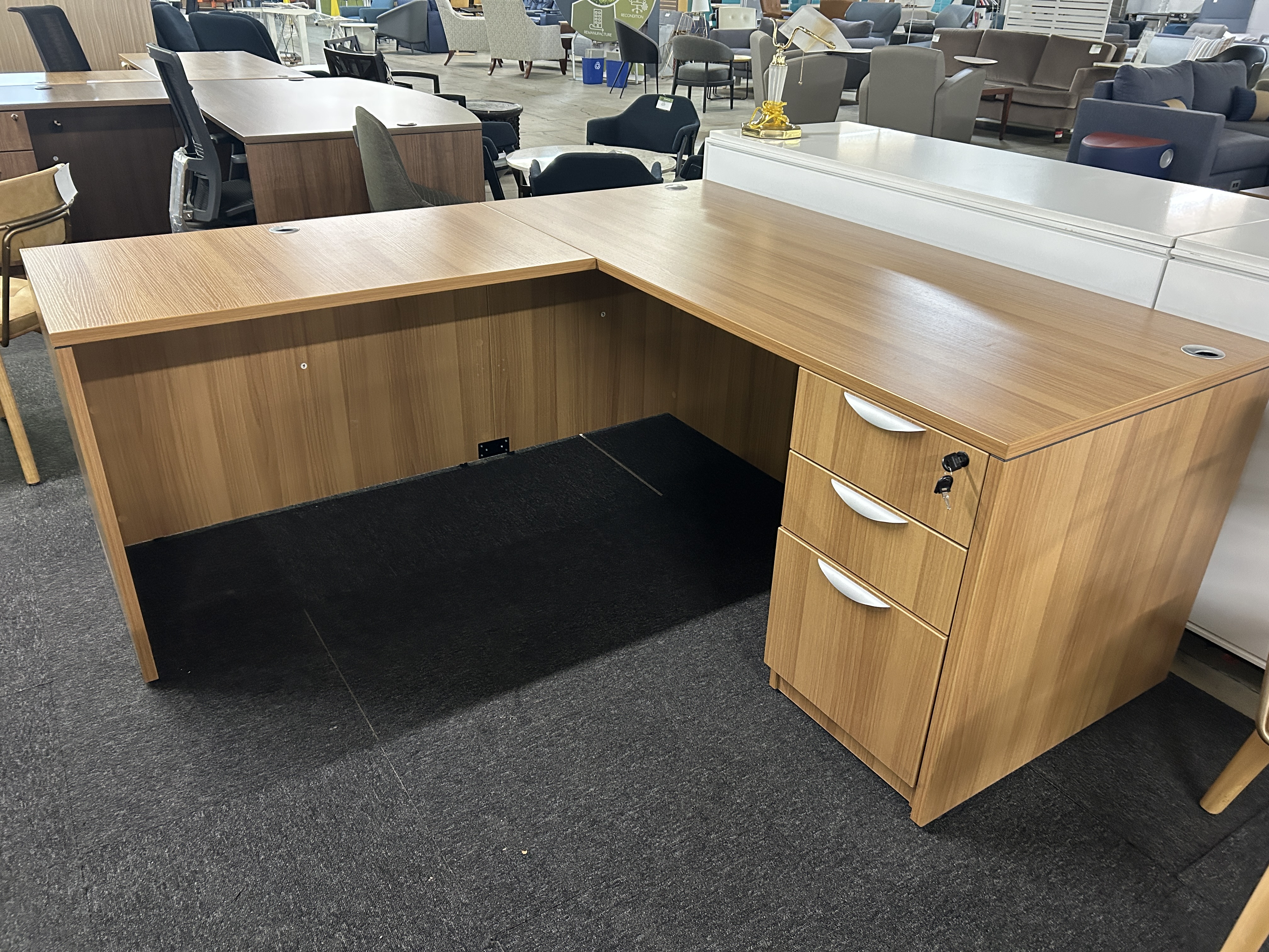 Complete your workspace with the Gateway Office Furniture L-Shape Desk Set in a professional Harvest Walnut finish. This durable workstation features a spacious 66×30 main desk paired with a functional return and integrated storage to keep your office organized and efficient.