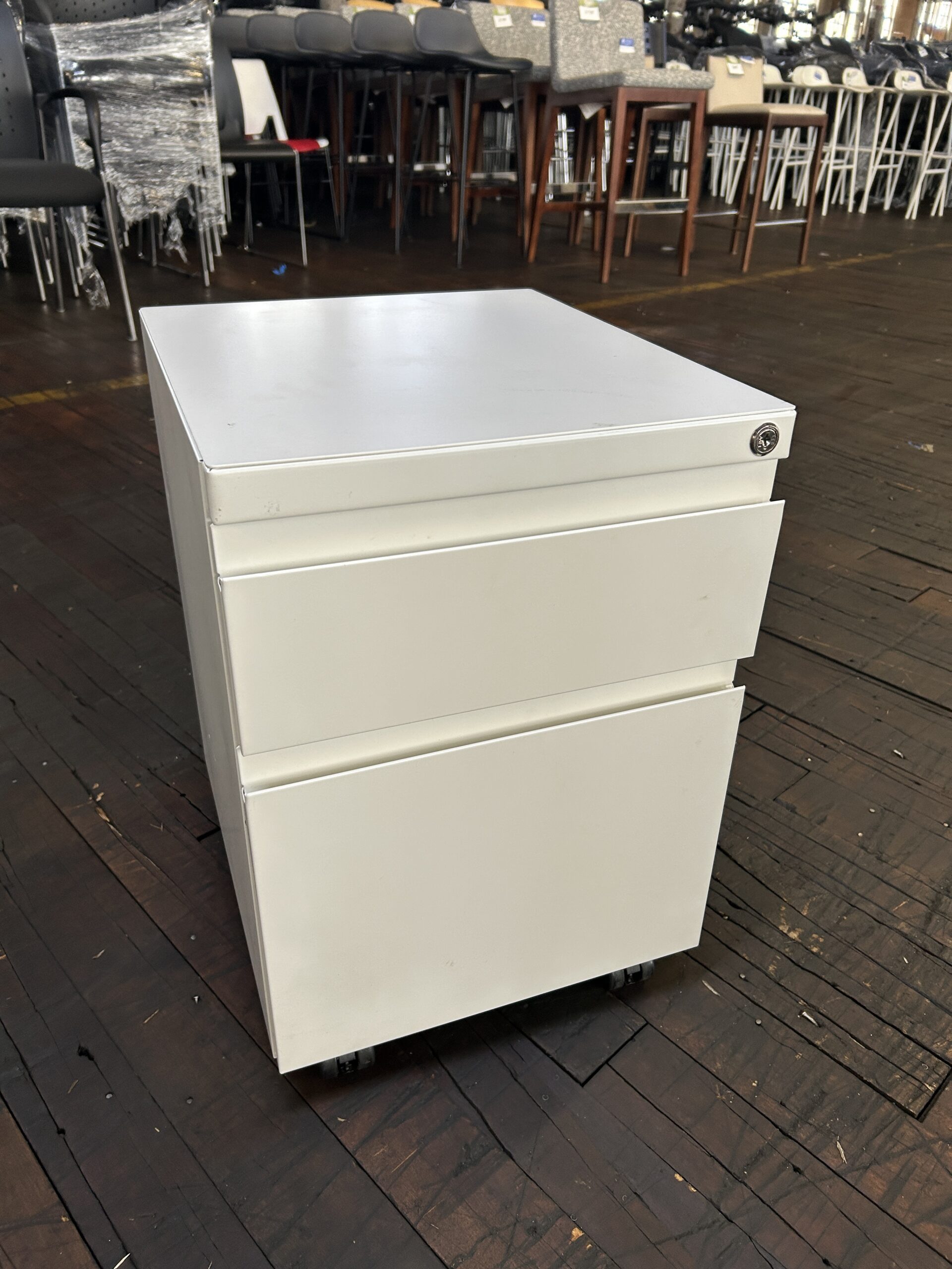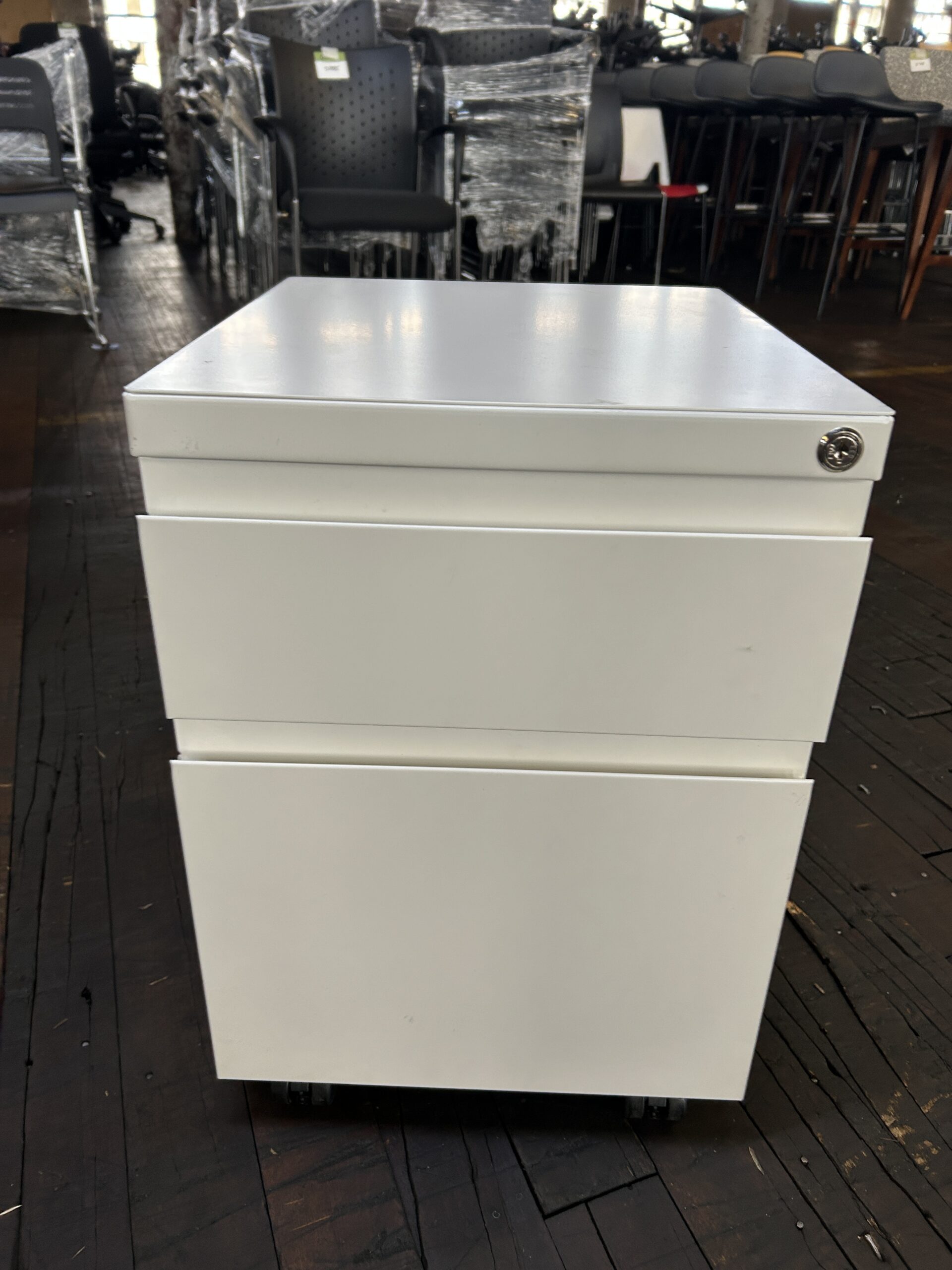Elevate your office storage with the Haworth Mobile Pedestal. This sleek white metal unit features a Box/File configuration and is fully loaded with options to increase personal adjustment and comfort in any modern workspace.
