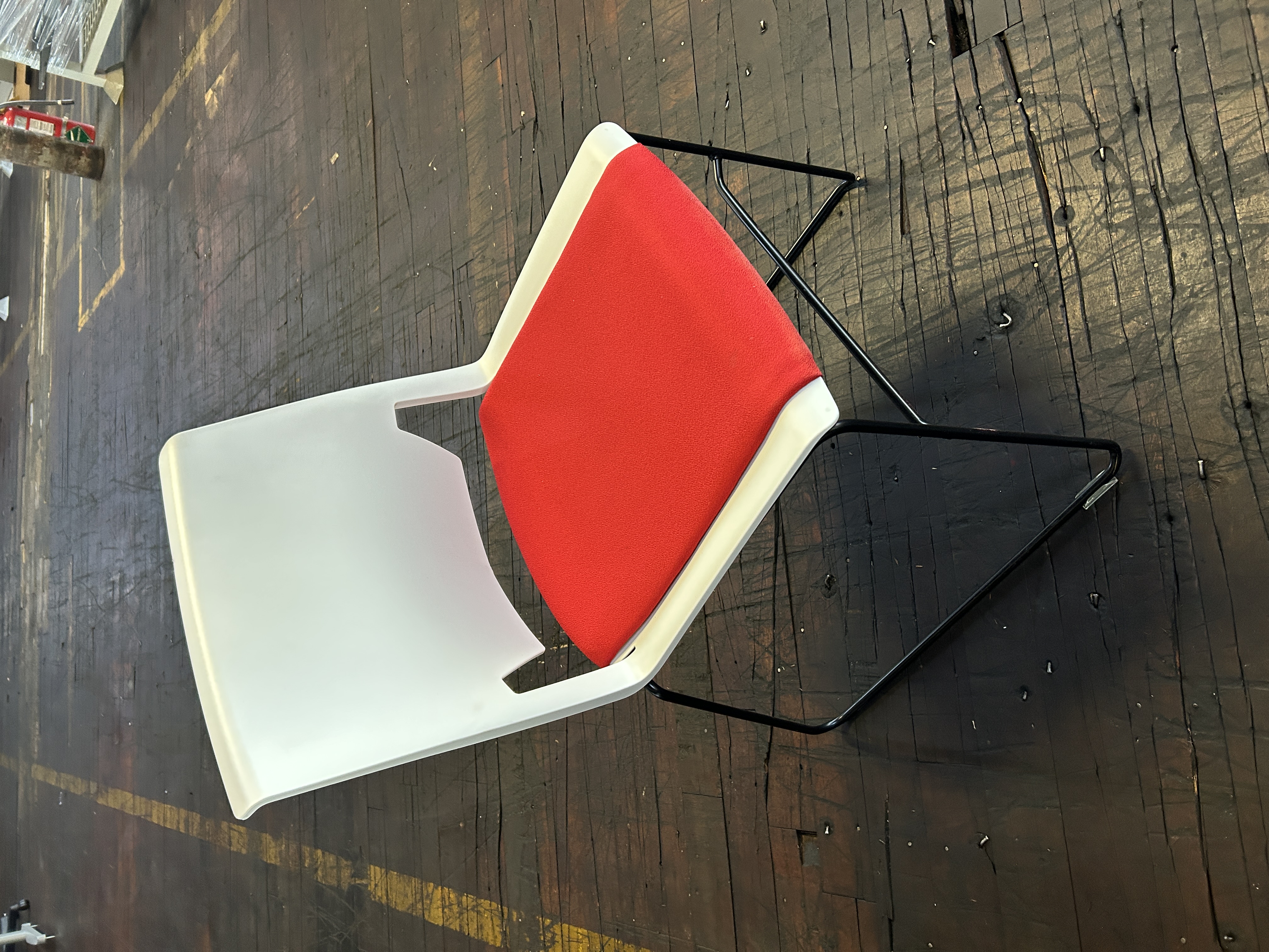 - White finish (polymer shell) with an red upholstered seat pad for aesthetic detail