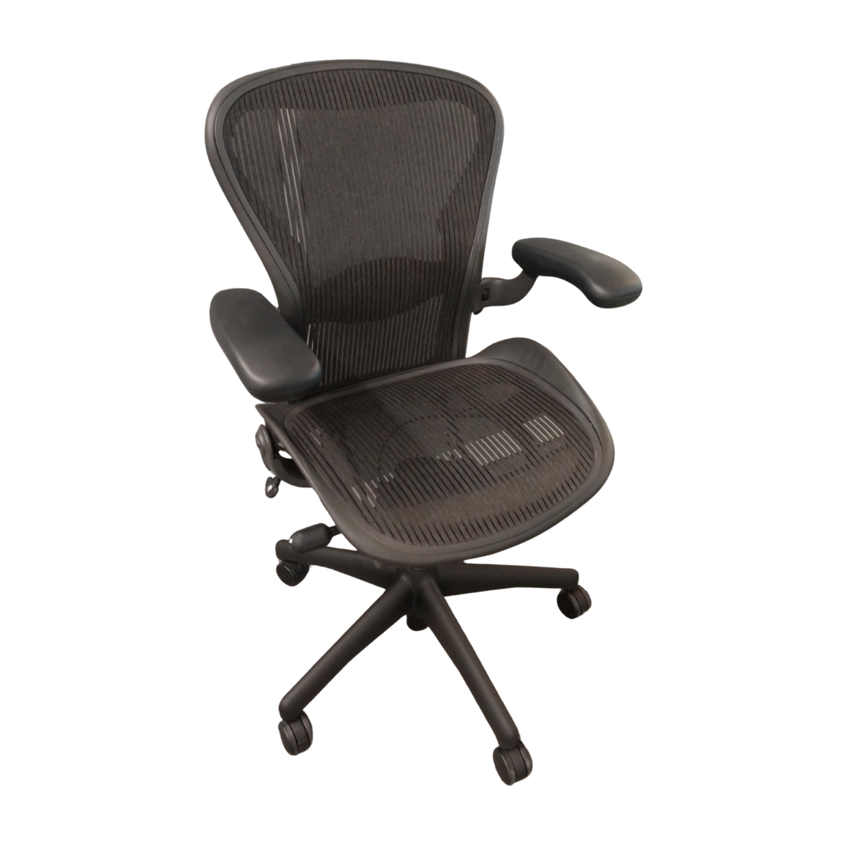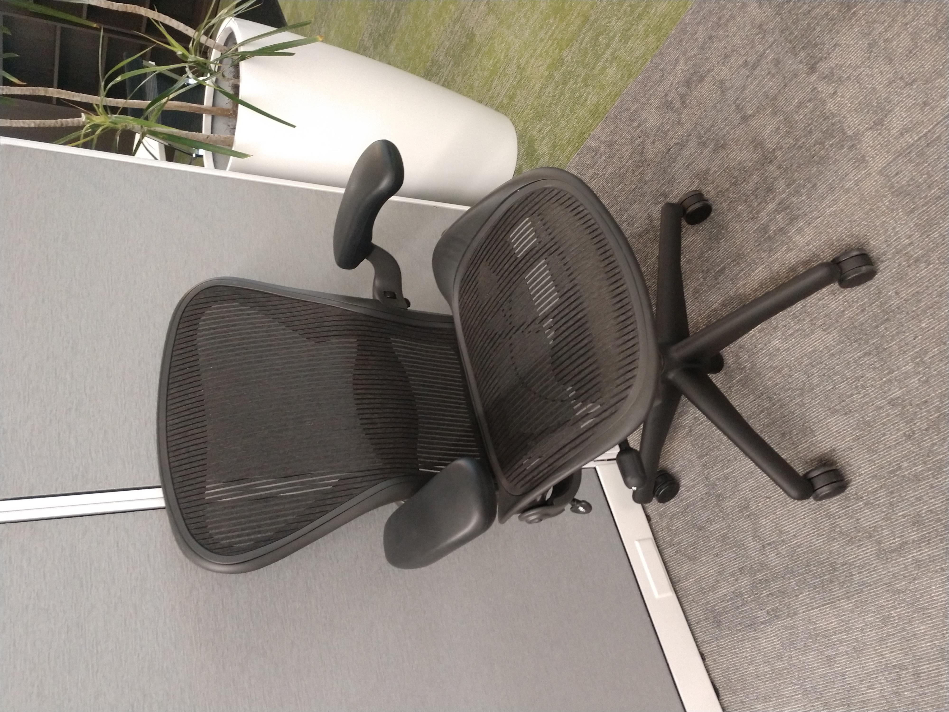 Experience iconic comfort with the Herman Miller Aeron Chair, Size B. Engineered for performance, it features a breathable mesh seat and 3-function adjustability for all-day ergonomic support. Perfectly balanced for medium-sized users, it combines innovative design with lasting durability.