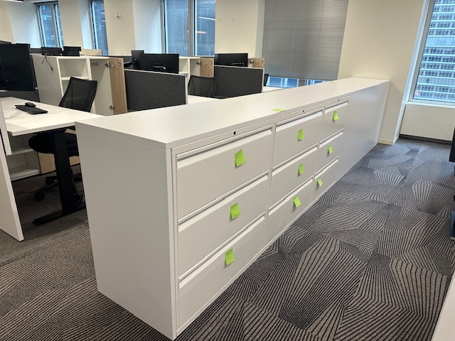 Elevate your storage efficiency with the Knoll Calibre Lateral Files. These sleek white metal units feature three locking drawers and a durable worktop surface, providing a professional and fully loaded solution to increase personal adjustment and comfort in any office setting.