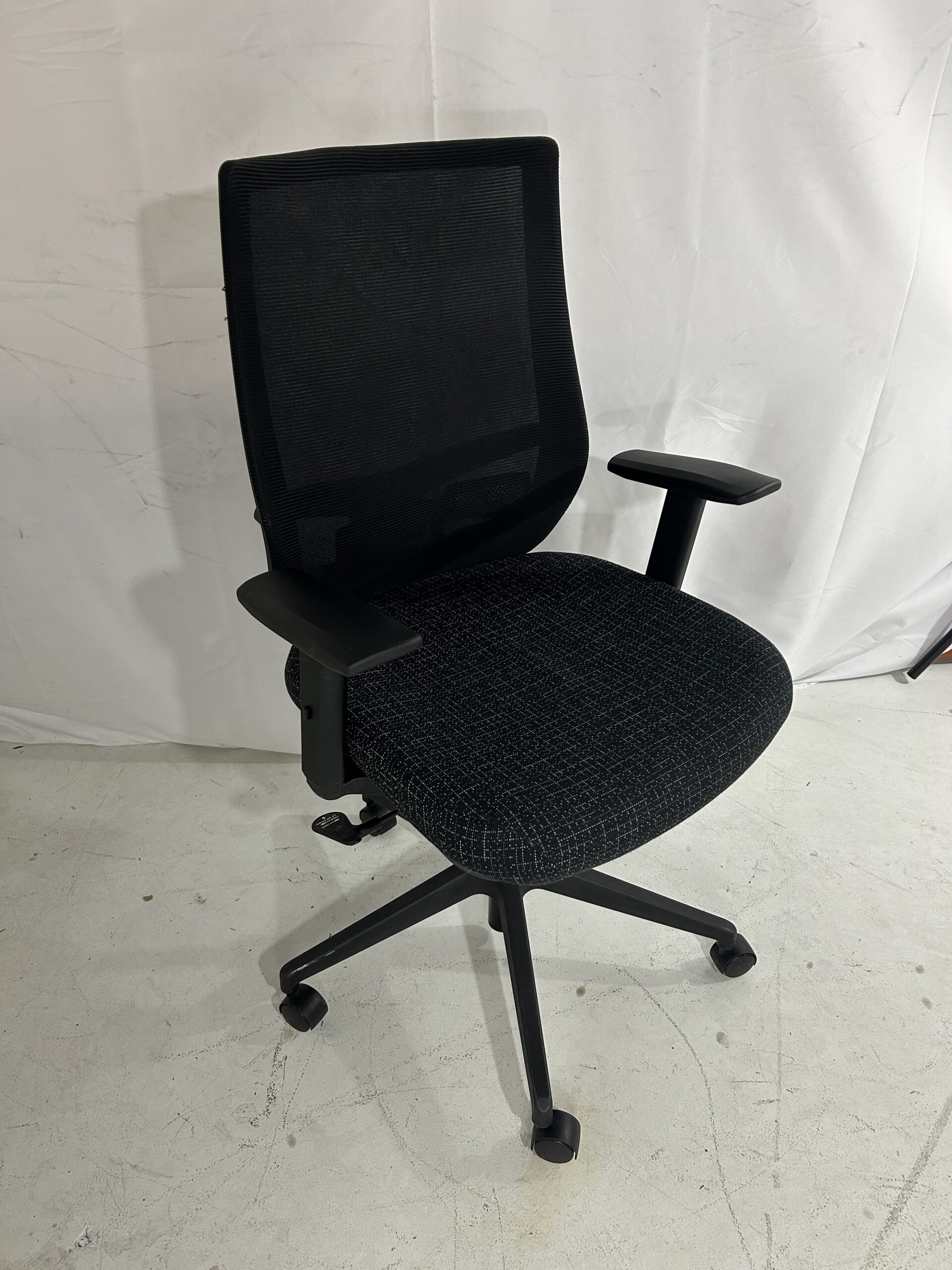 Enhance your task environment with this black office chair featuring essential ergonomic controls and a contemporary style. The chair provides a blend of breathability and comfort, making it ideal for long hours of professional use.