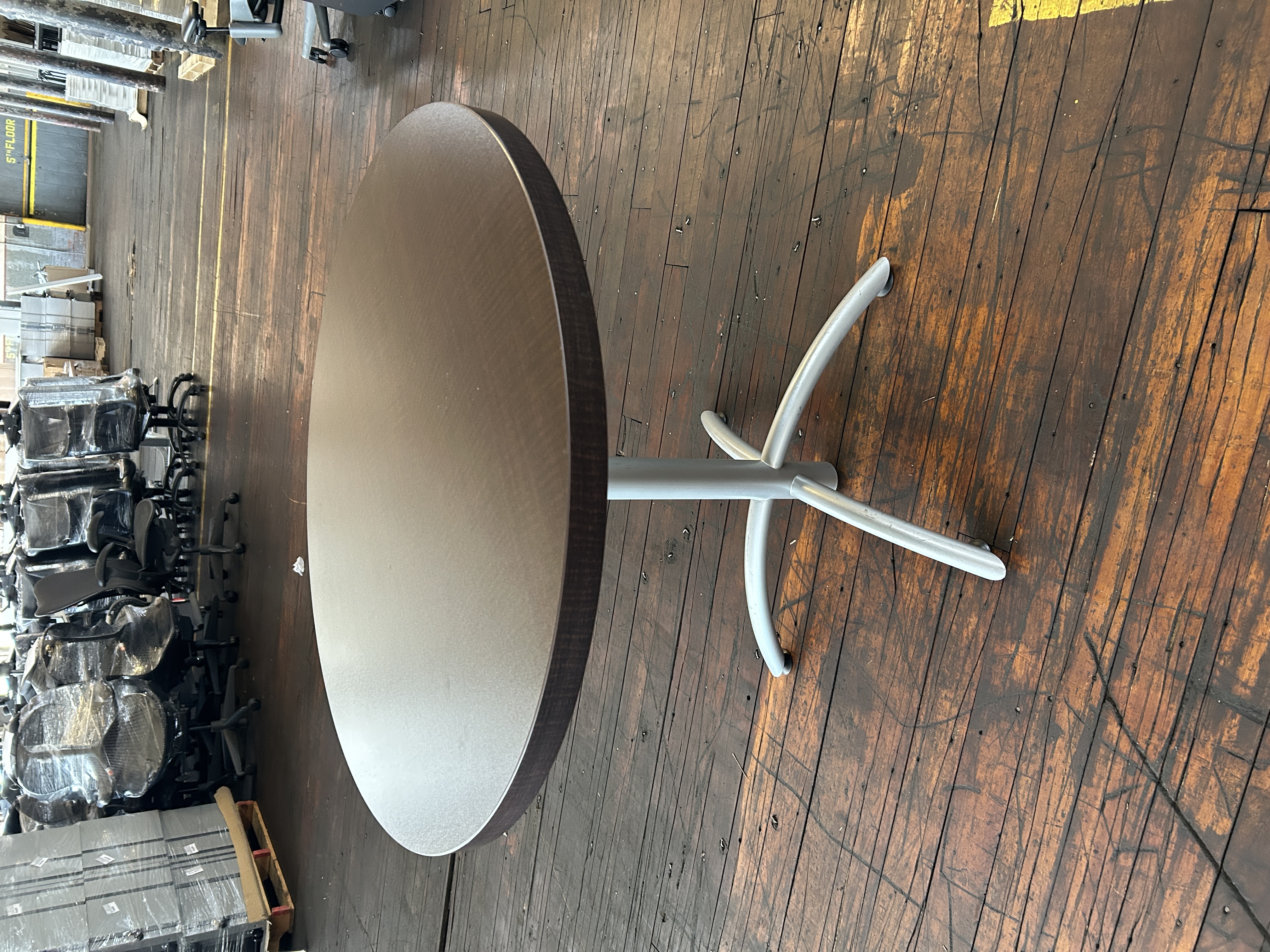 Optimize your workspace with this 36″ Round Table, featuring a professional dark brown laminate top and a sleek platinum base. This versatile table offers a modern, clean aesthetic that is perfect for collaborative meeting areas, breakrooms, or private offices.