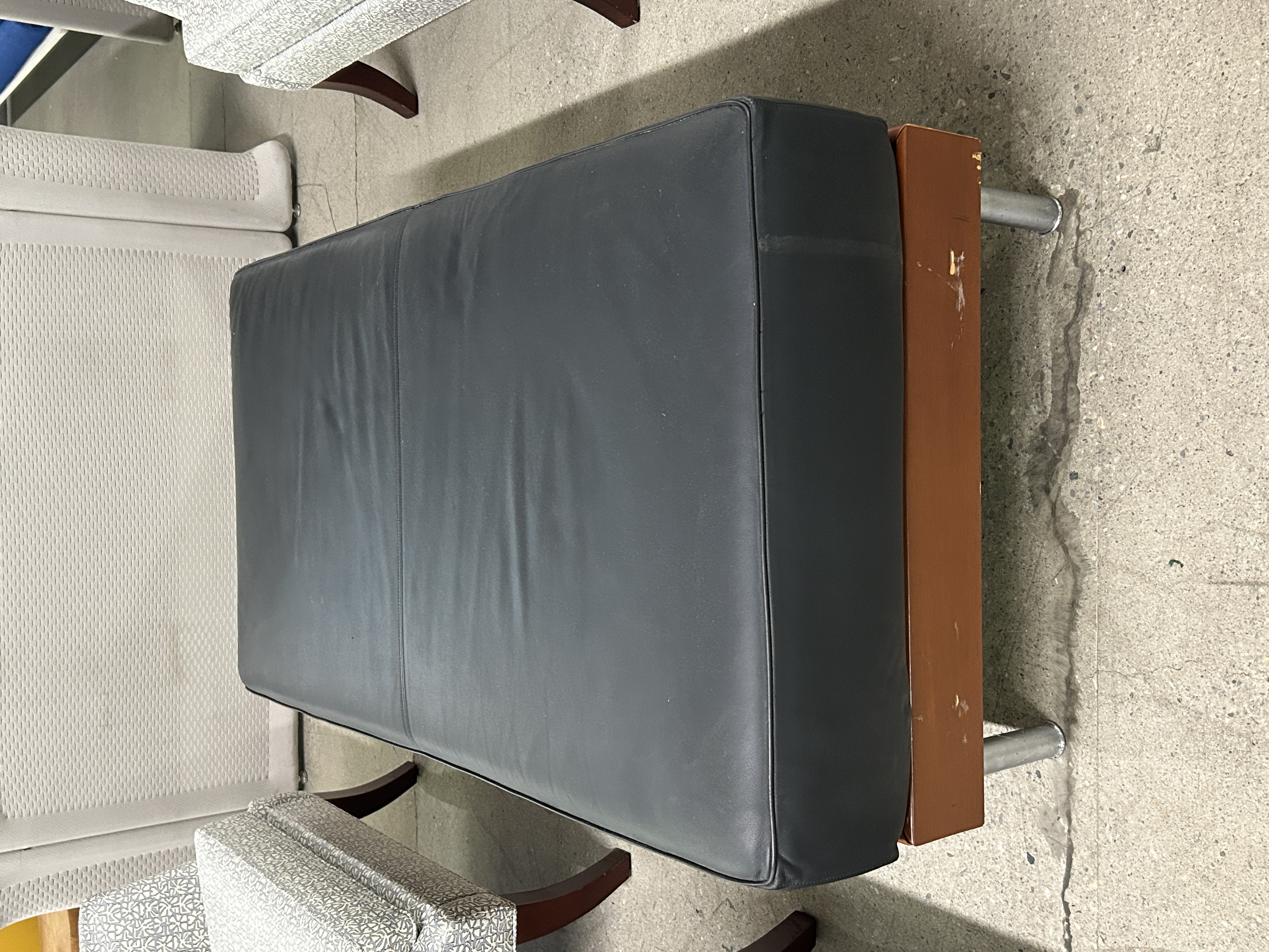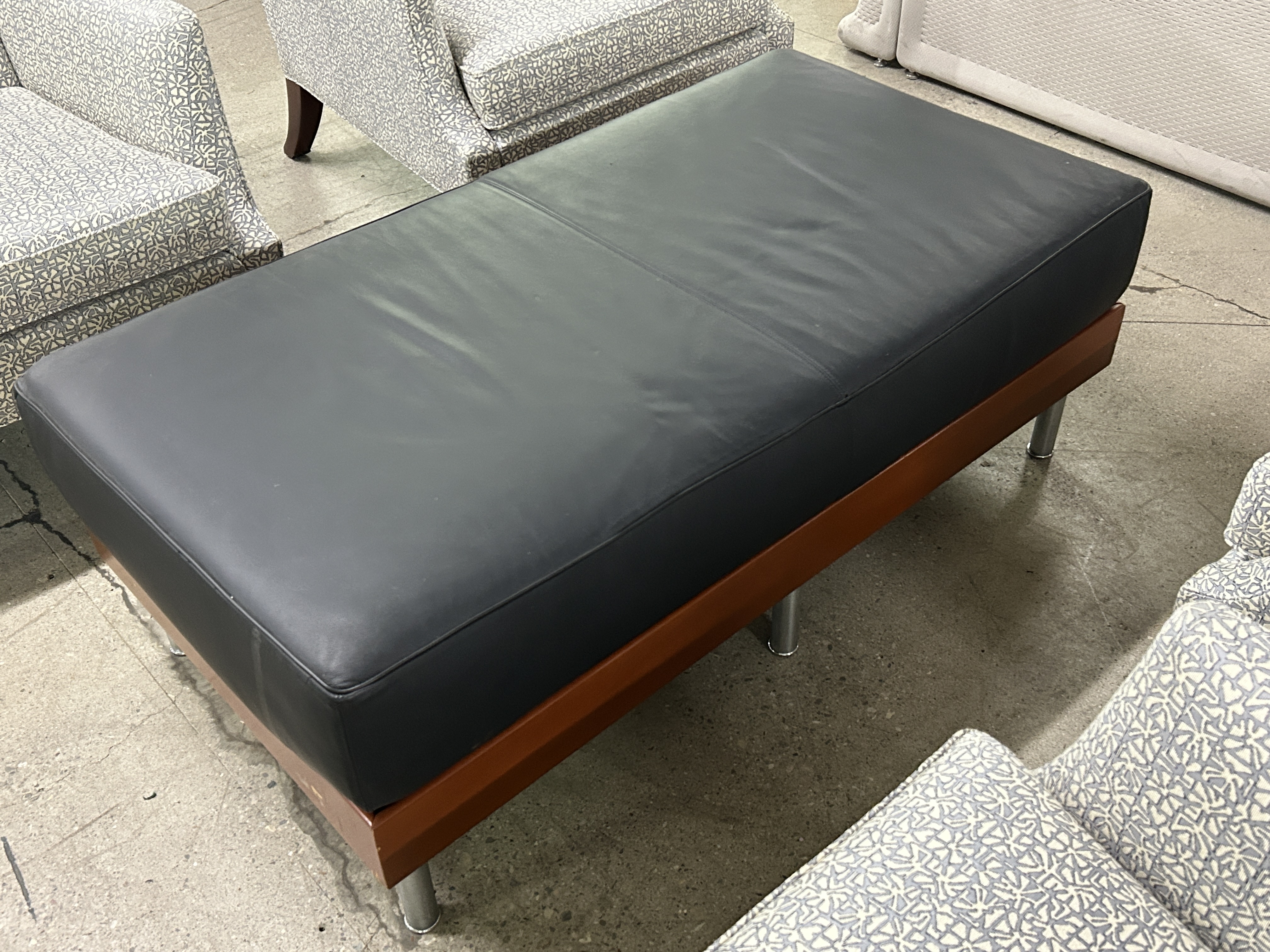Add timeless style with this Black Leather Bench Ottoman featuring a cherry wood frame. Designed for comfort and versatility, it works as extra seating or a functional centerpiece. The sleek black leather cushion pairs beautifully with the warm cherry finish for a classic, refined look.