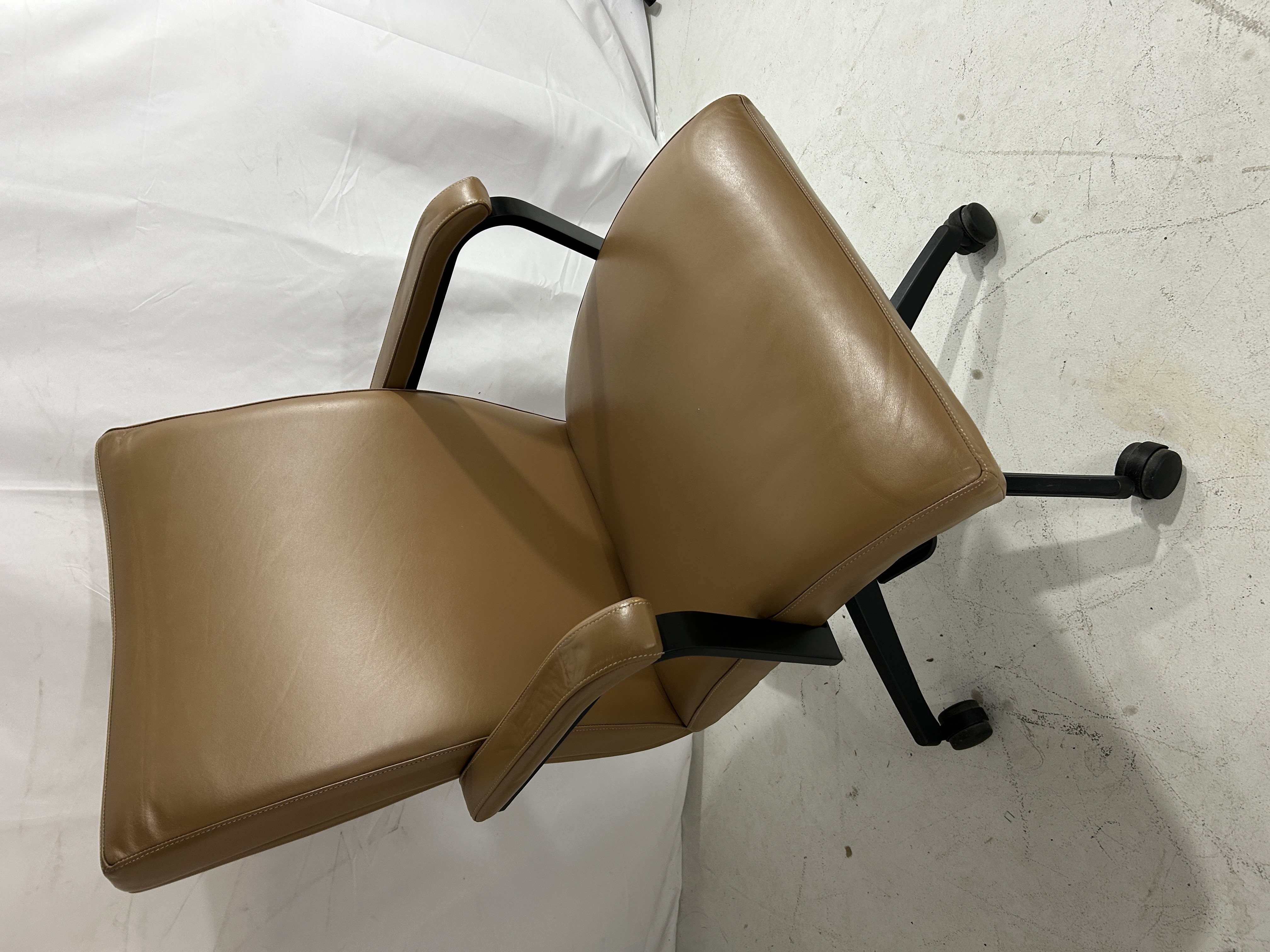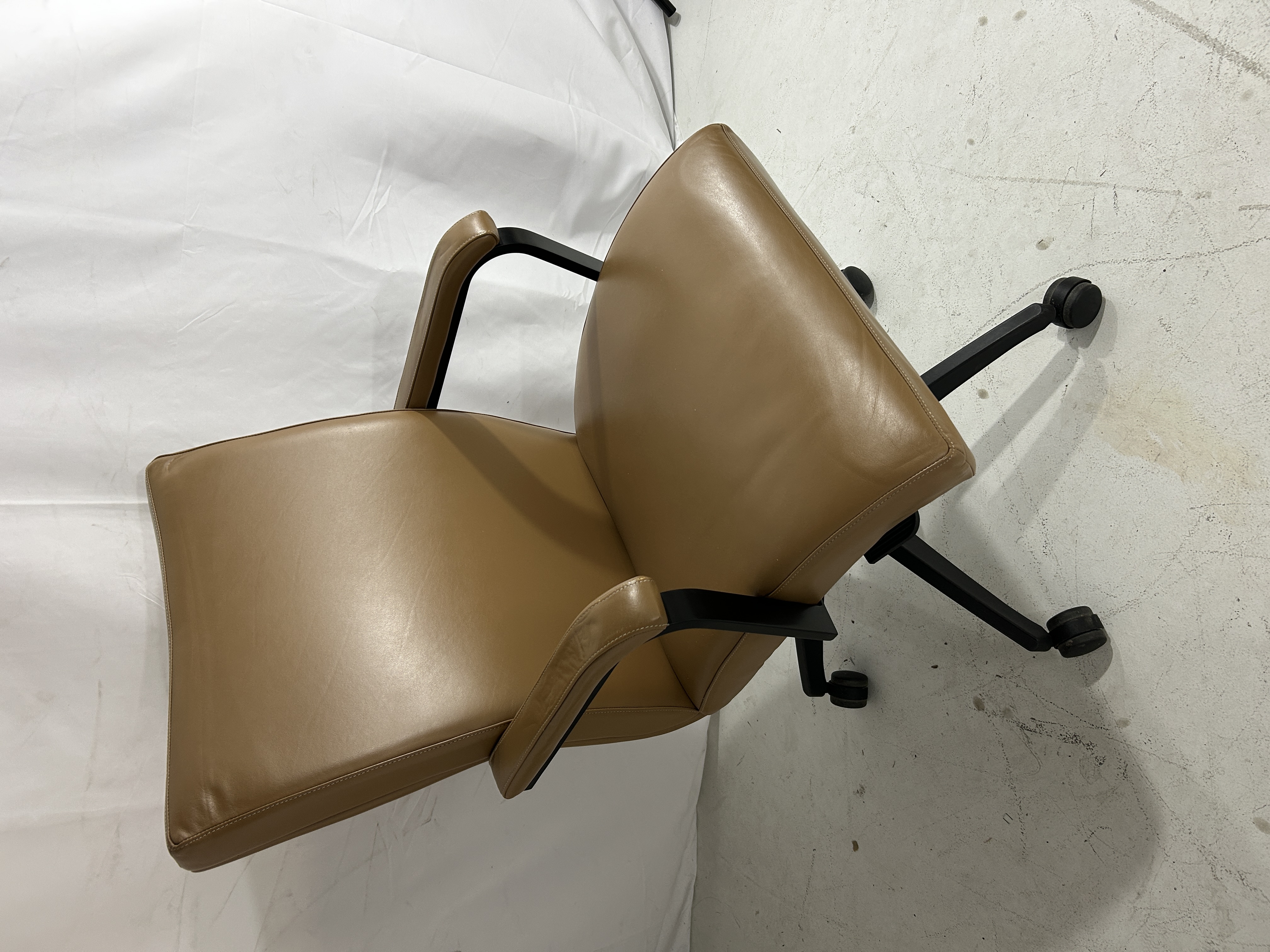Equip your meeting space with the luxurious OFS Leather Conference Chair. Upholstered in rich caramel brown leather, this executive chair combines premium style with essential ergonomic functions, including pneumatic height adjustment and a convenient tilt/lock mechanism to ensure tailored comfort during long meetings.