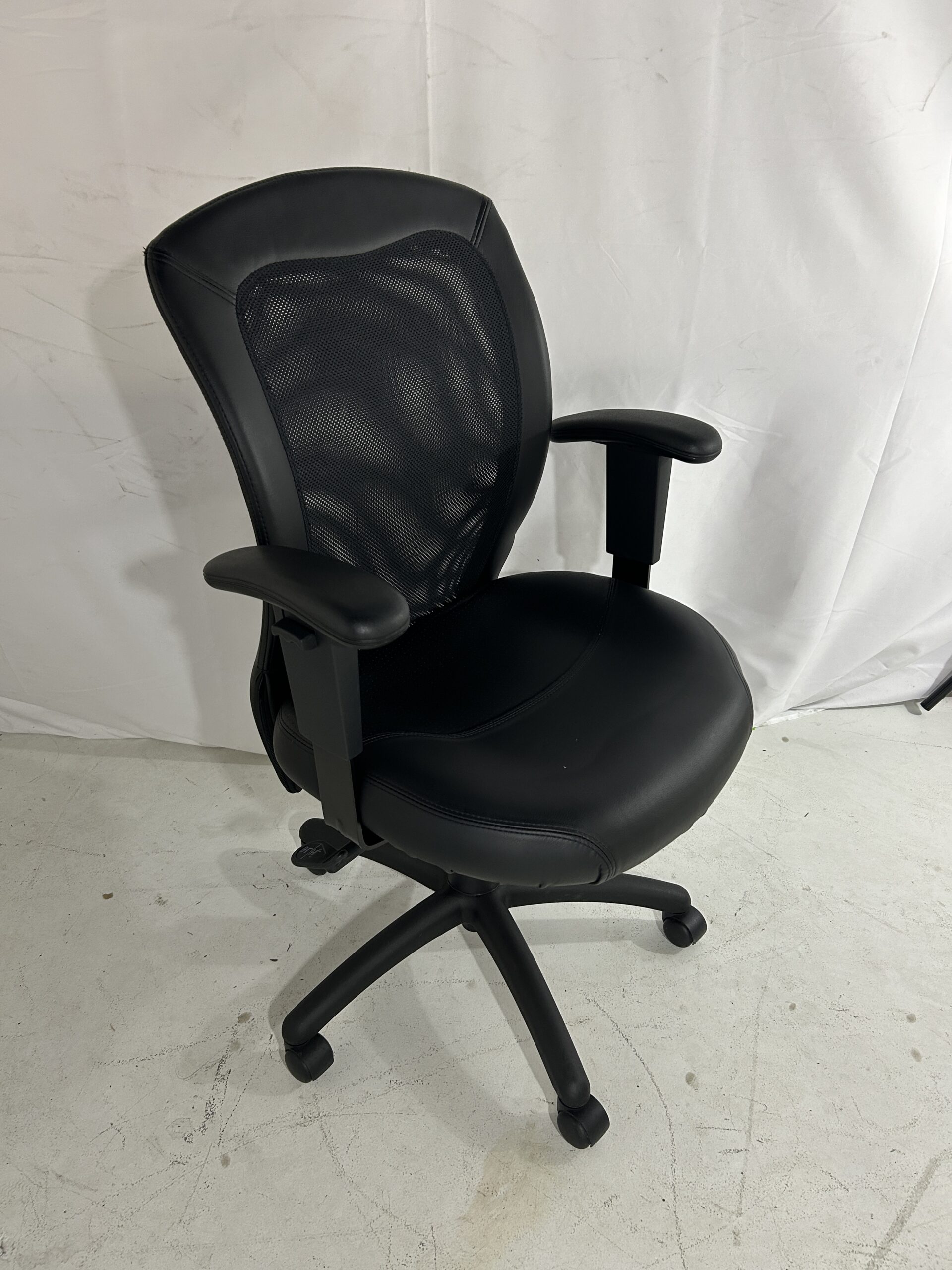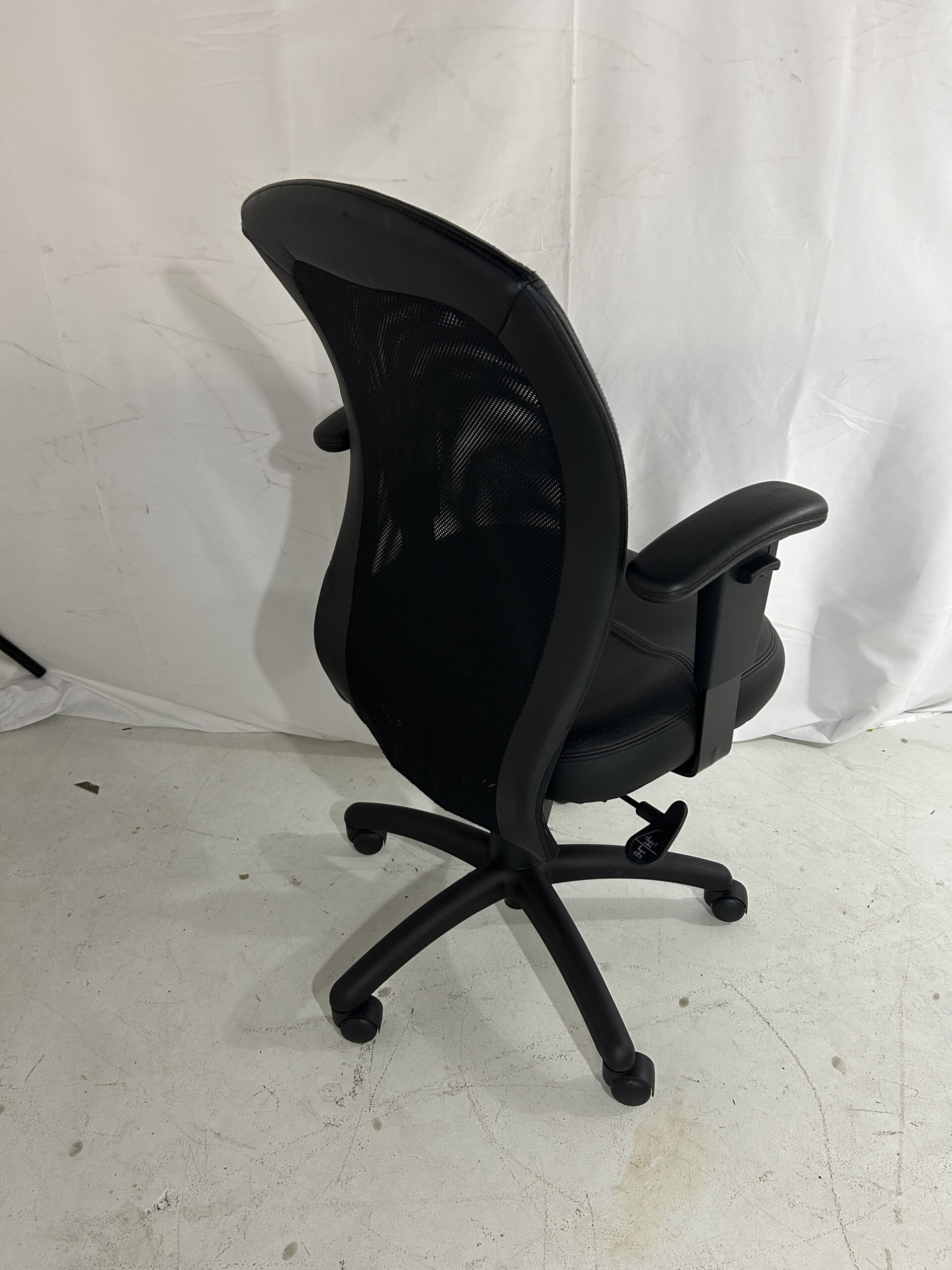 Step into comfort with the Offices To Go office chair. Upholstered in durable black leather with a mesh back this ergonomic chair is designed for the demands of the modern workplace.