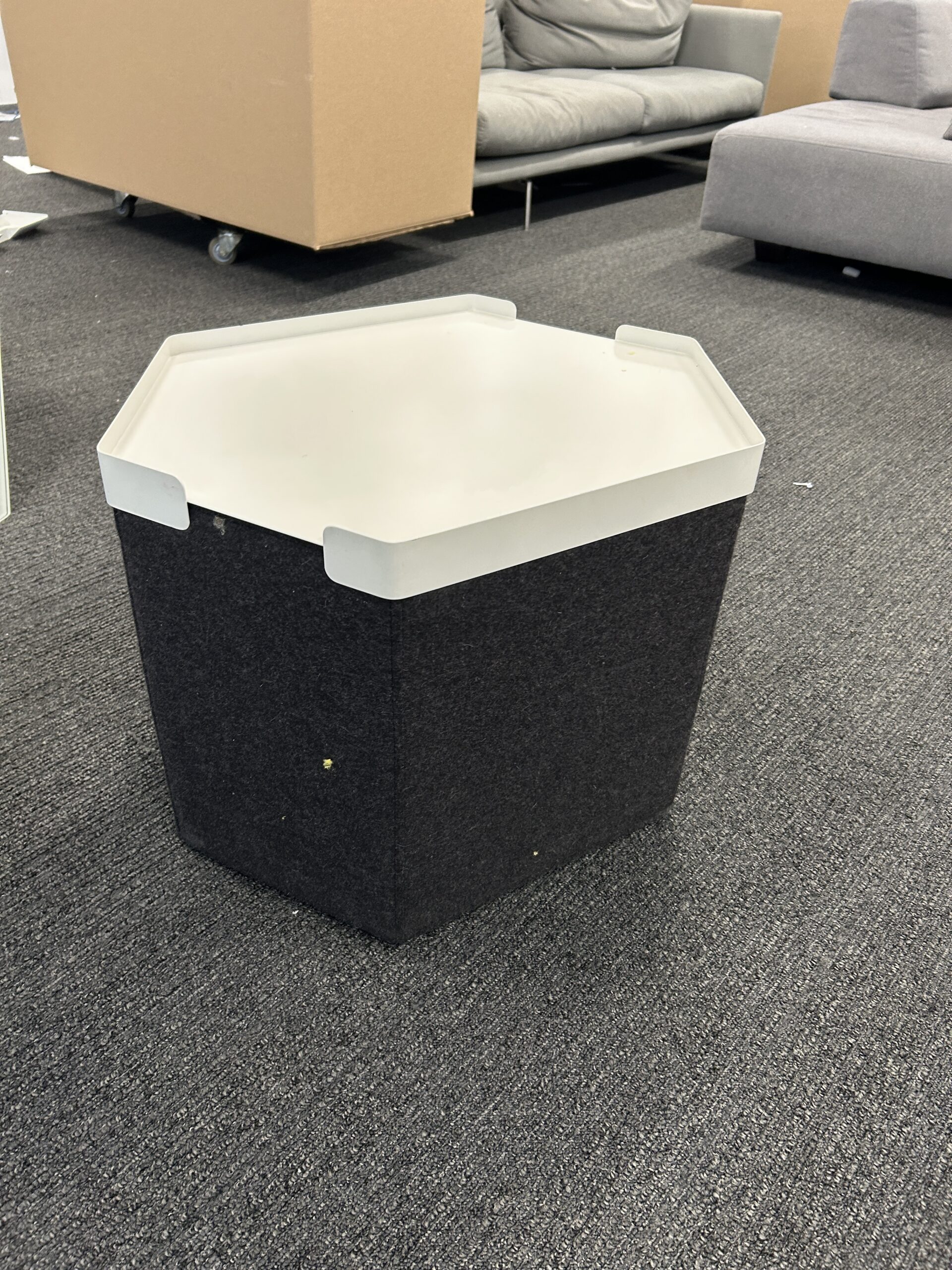 Provide a professional touch to your lounge with the Charcoal Ottoman. This versatile piece features a dark charcoal fabric-upholstered body paired with a sleek white hexagonal top that can serve as a firm surface for laptops or drinks. Its geometric design and compact footprint make it an ideal choice for modern collaborative spaces, reception areas, or flexible office touch-down spots.