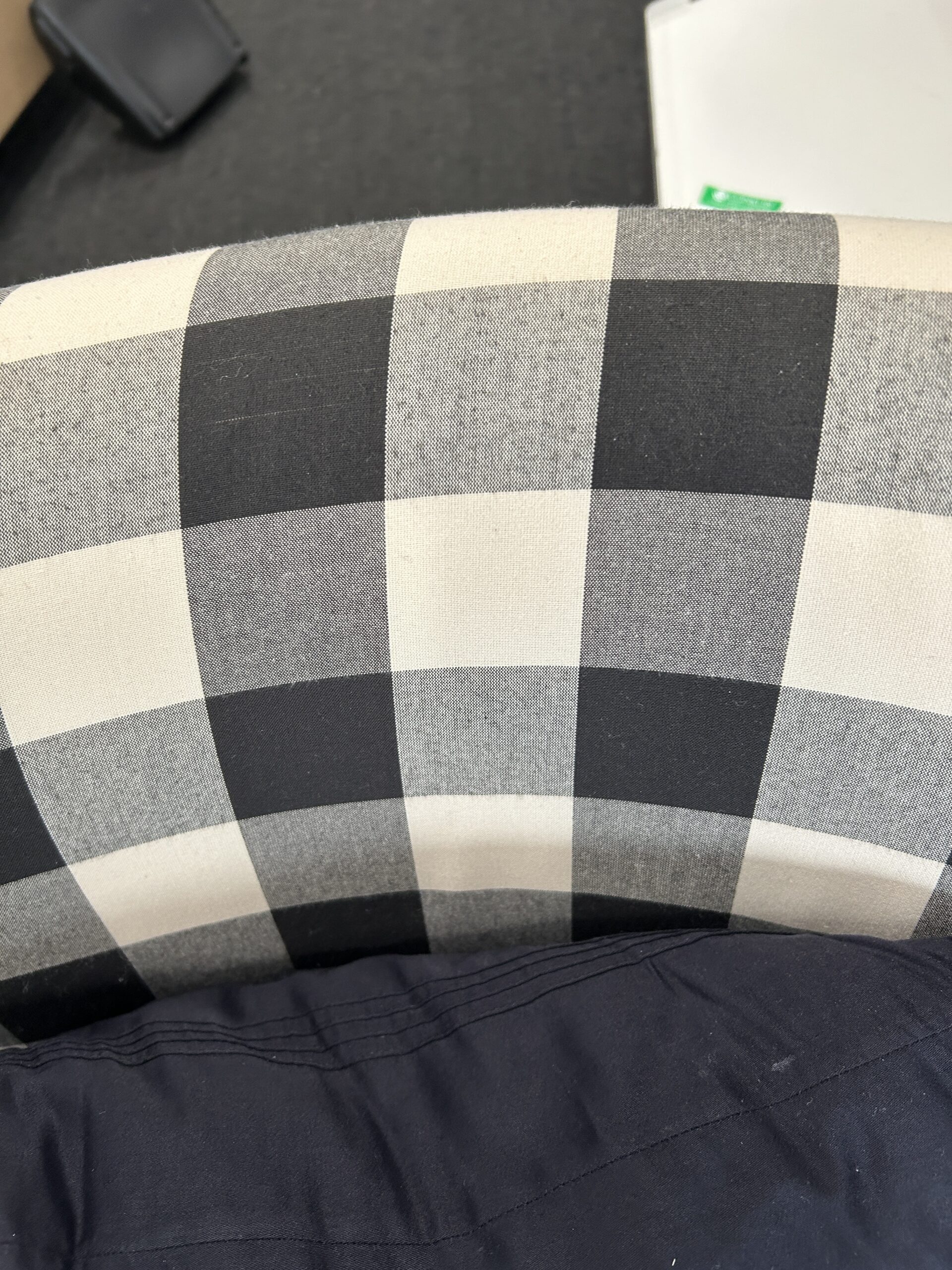 • Bold white and black plaid upholstery