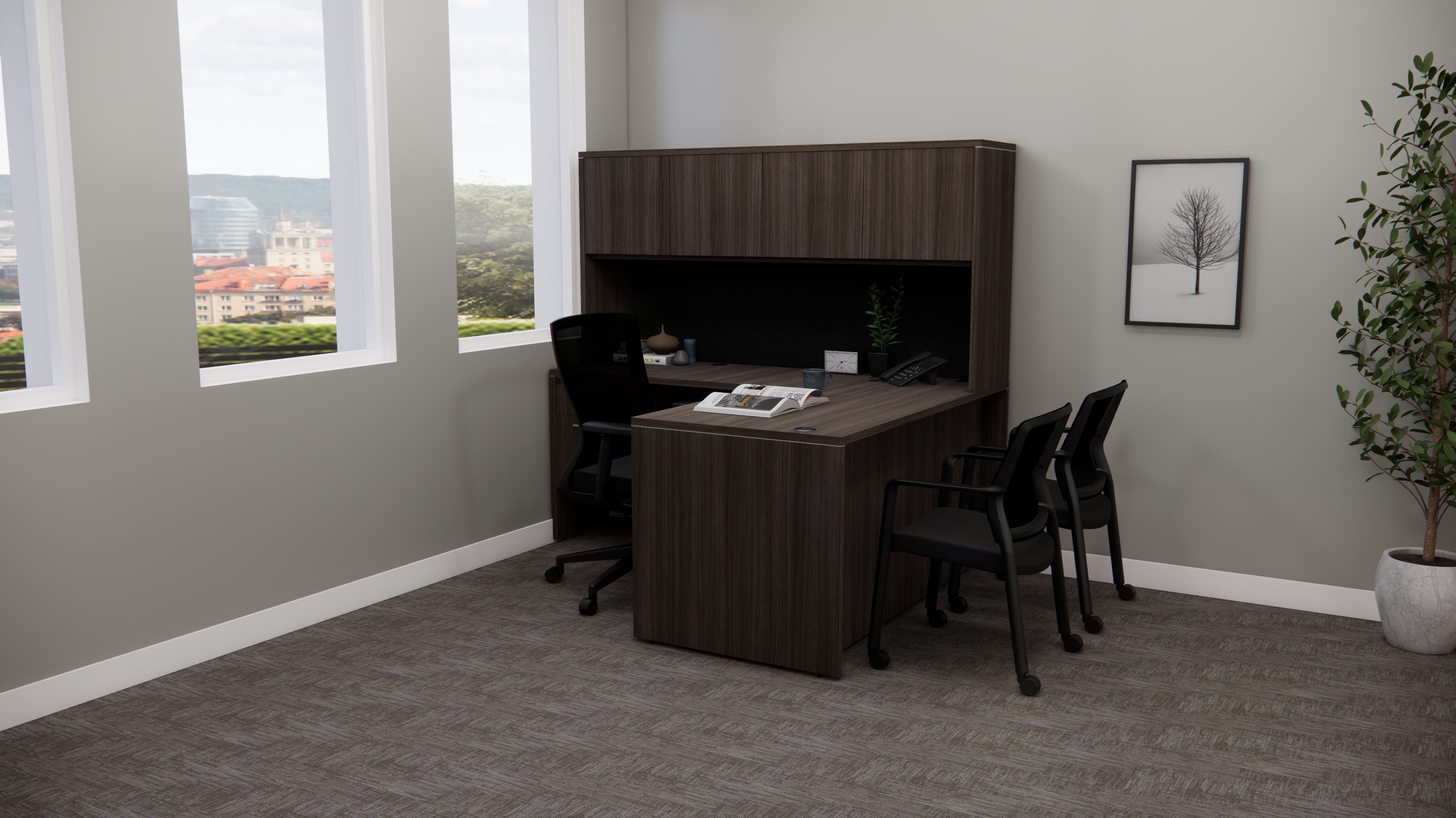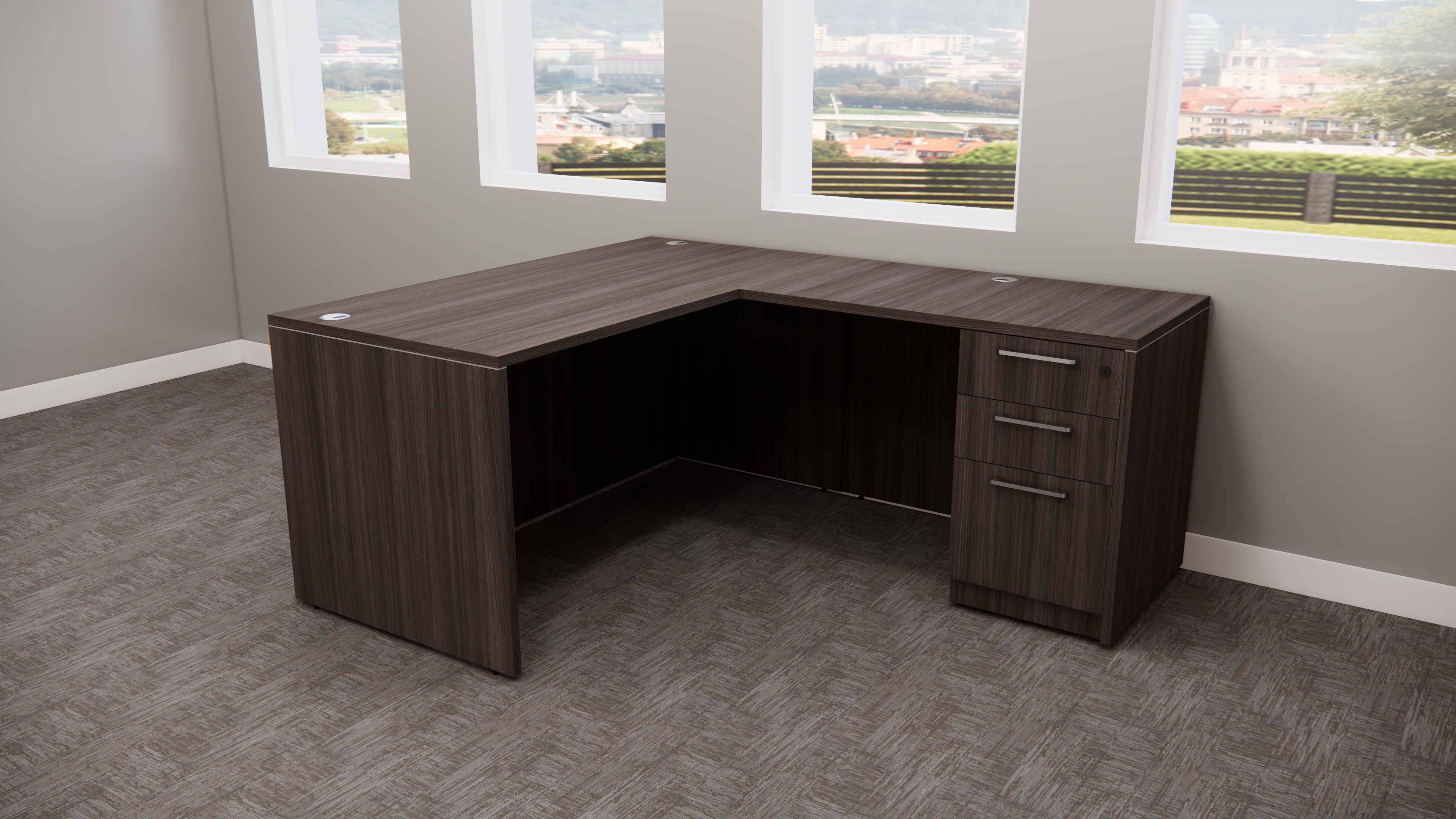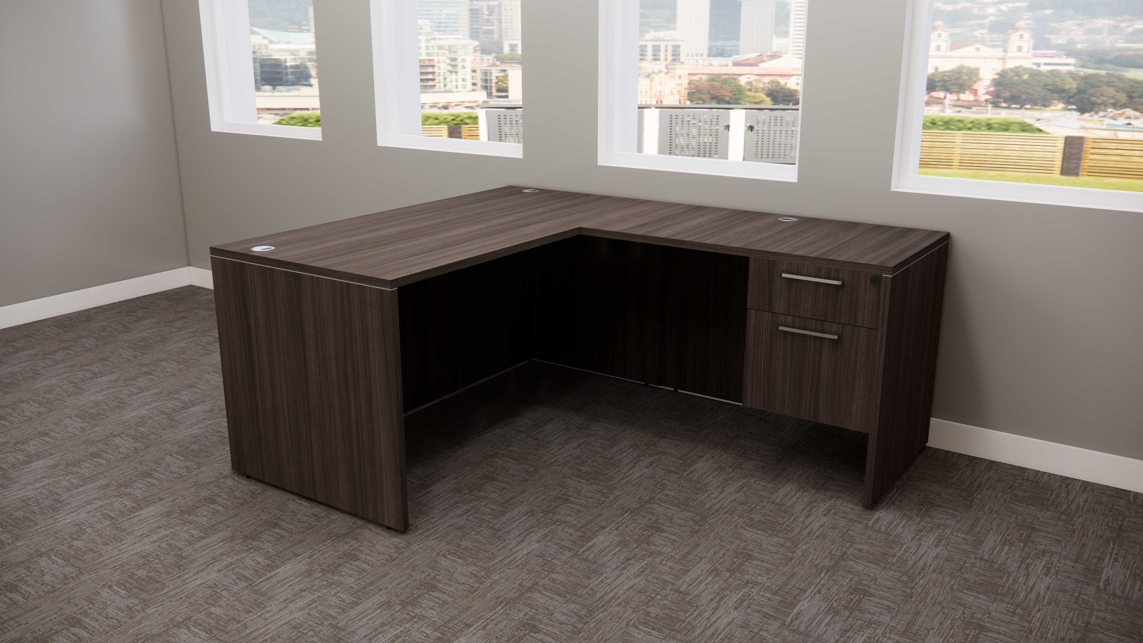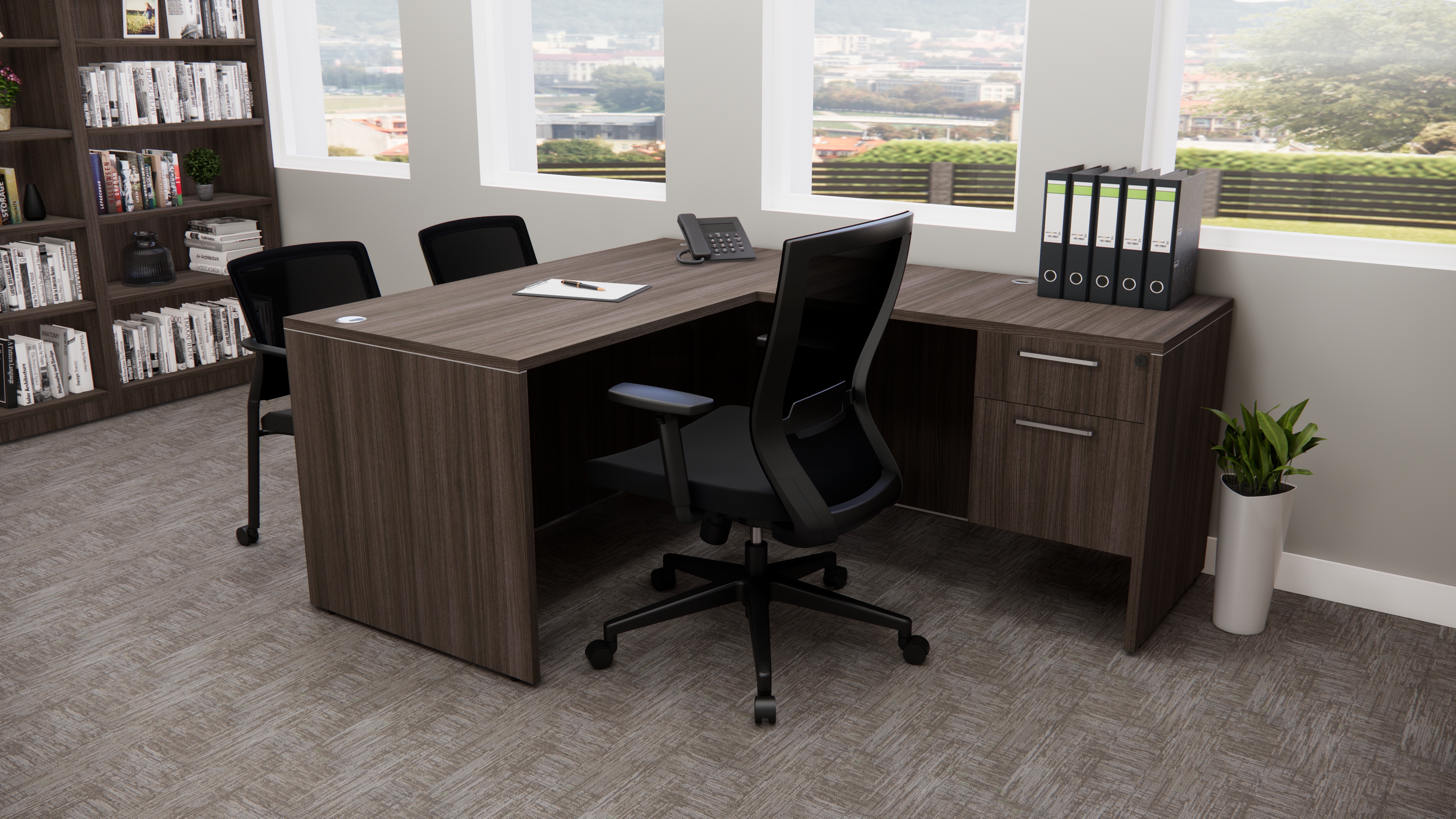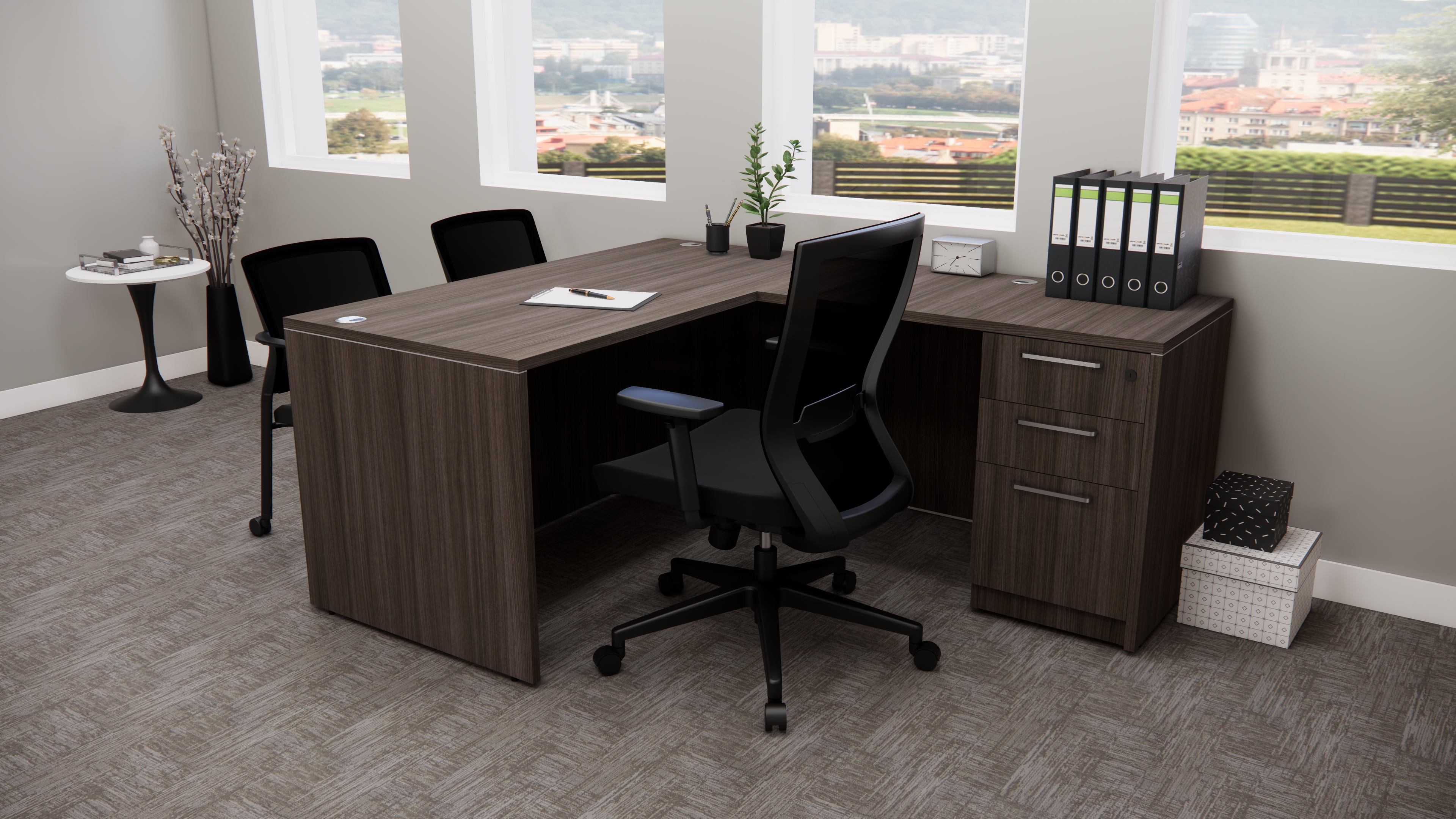 Maximize productivity with the Skyline L-Shaped Desk by Gateway Office Furniture. With generous surface area and smart storage options, it’s perfect for executive or home offices. Add a hutch for extra organization and vertical space.