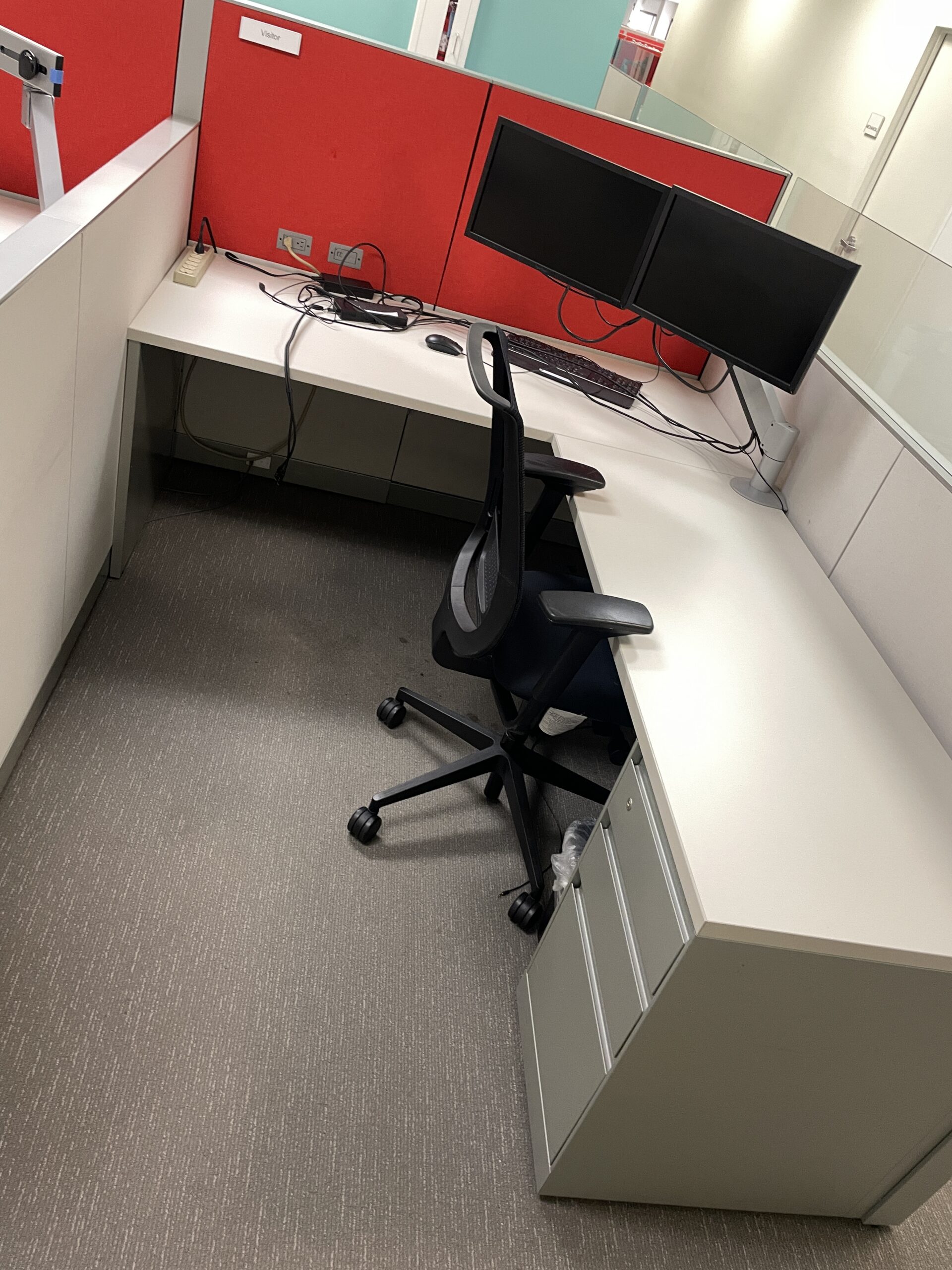 Upgrade your office with the Steelcase Answer Workstations. Featuring a spacious 5 1/2′ x 7 1/2′ layout with tiered panels and 12″ glass for privacy and light, these powered workstations offer modern comfort and efficiency for professional environments.