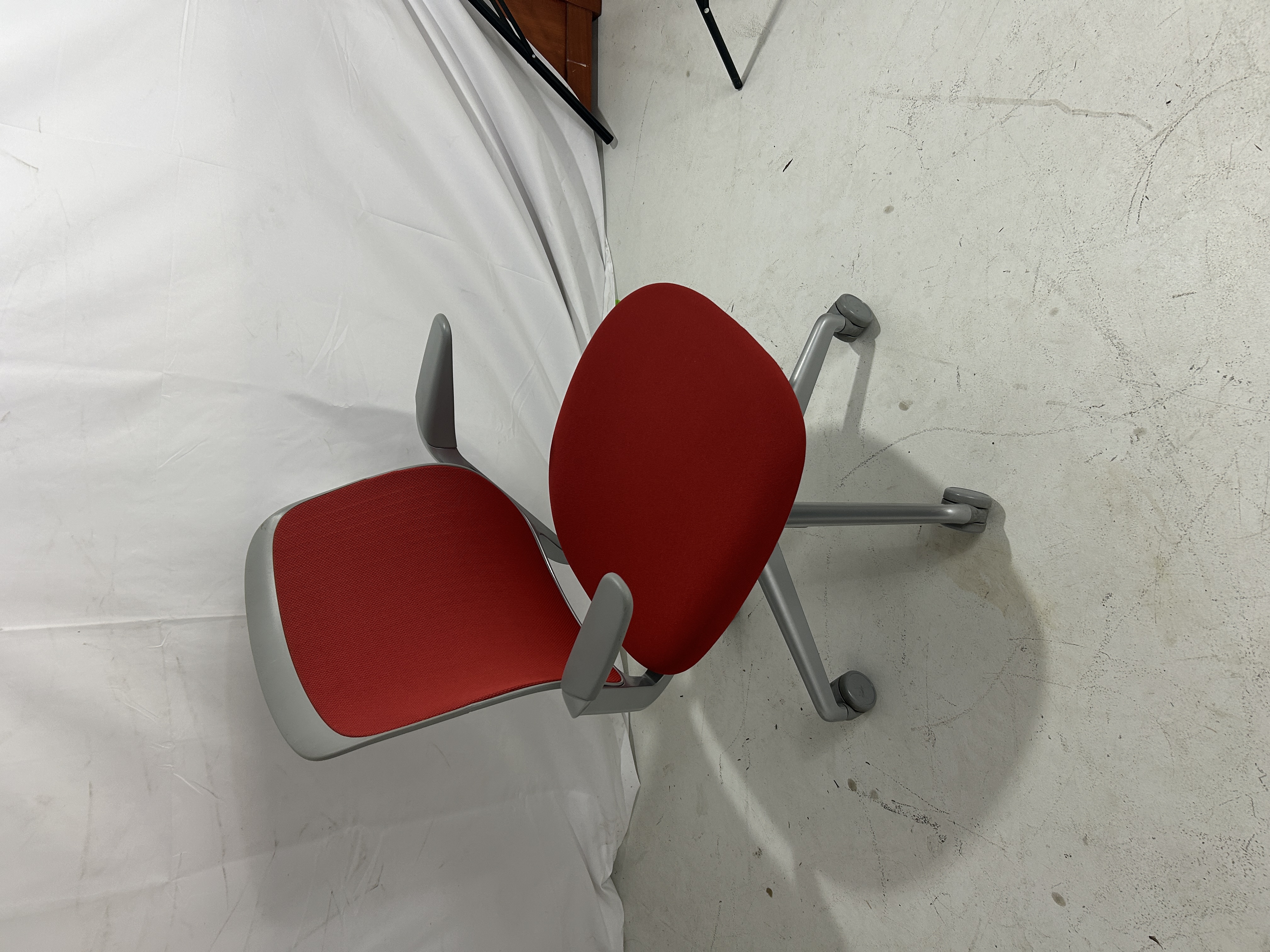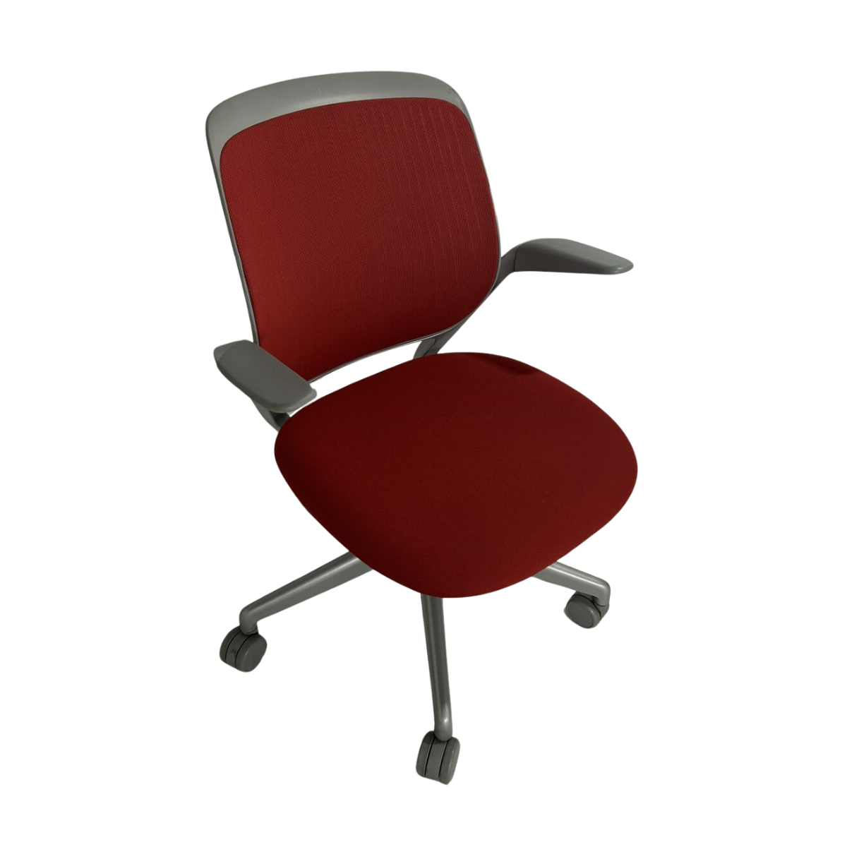 Experience comfortable and focused collaboration with the Cobi conference chairs by Steelcase. Featuring a supportive red mesh back and a coordinating fabric seat, these modern meeting chairs include fixed arms and pneumatic height adjustment, ensuring long-term comfort and optimal ergonomics for any conference room setting.