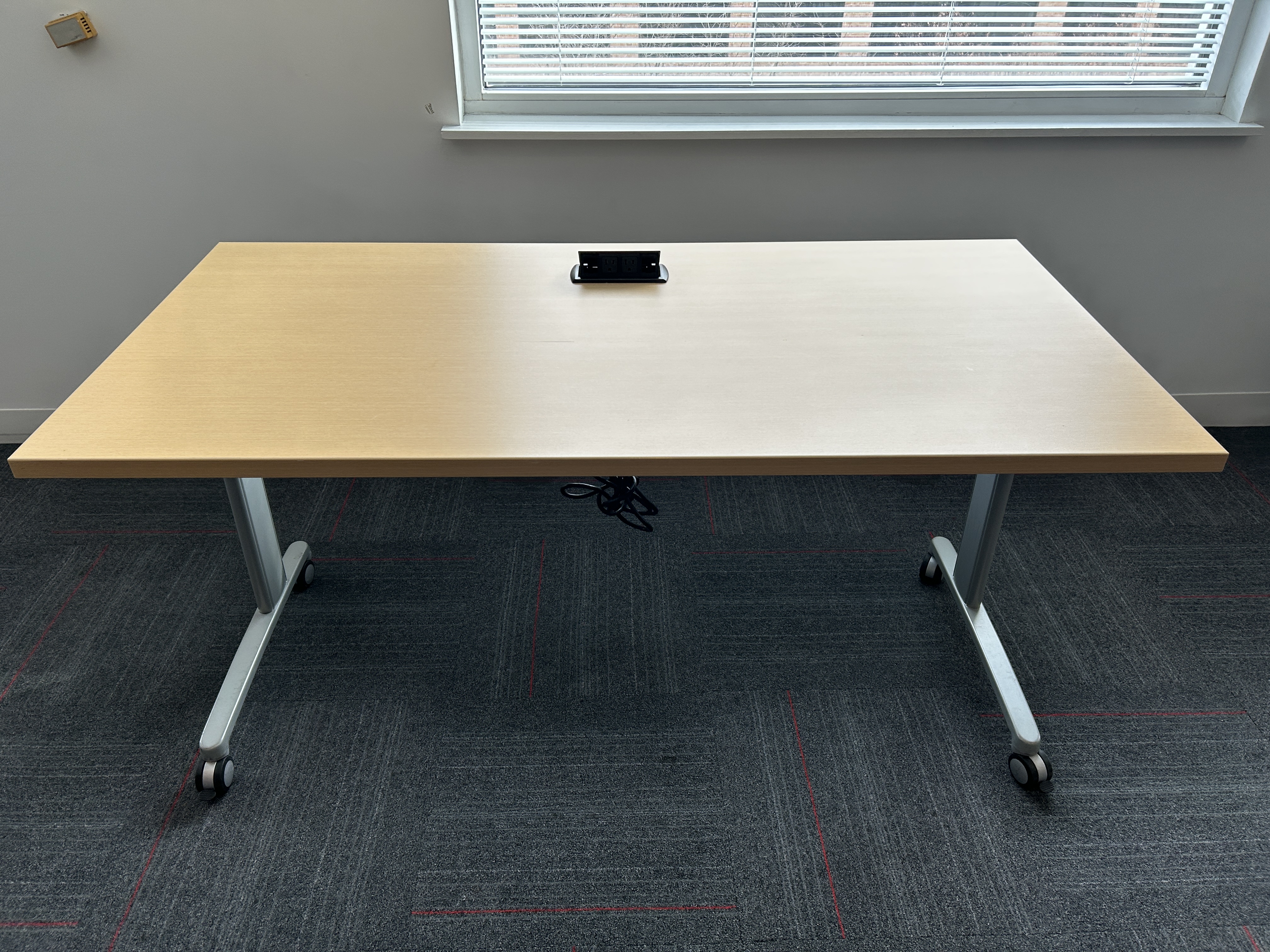 Maximize flexibility with the Teknion Maple Flip-Top Nesting Table. Ideal for training or conference rooms, it features a 60″ x 30″ surface, powered grommet for connectivity, and a space-saving flip-top design for easy storage.