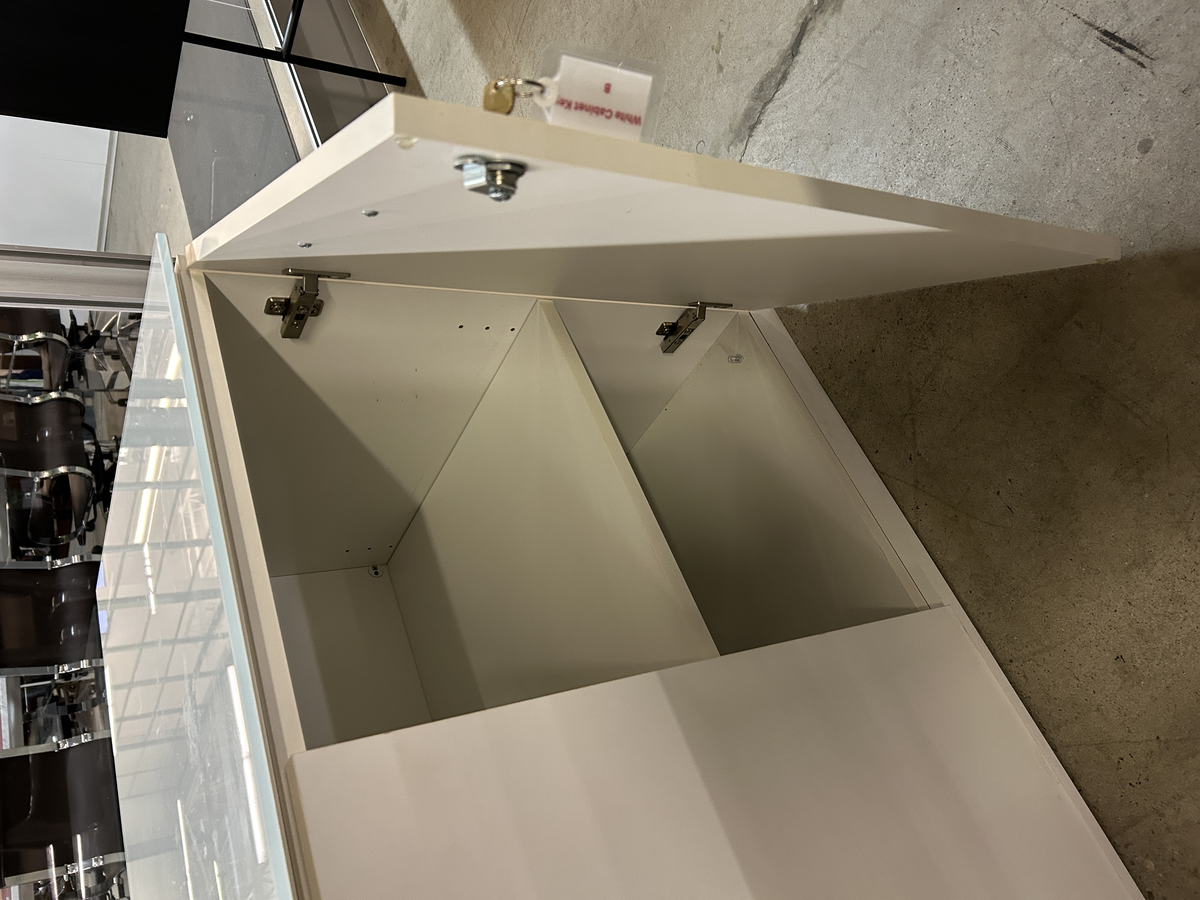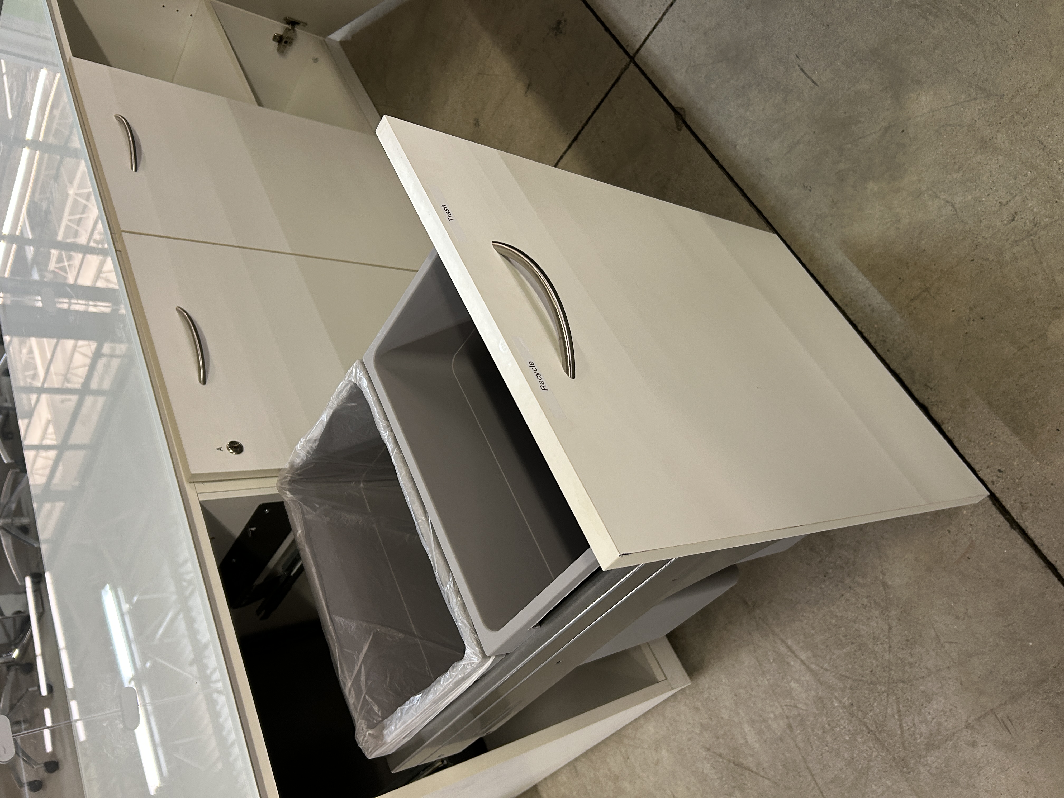 Streamline your workspace with this White Recycling Credenza topped with sleek glass. Designed for modern offices, it combines functionality with style—concealing recycling compartments while enhancing your décor.